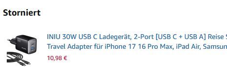 Das Ladegeräte von INIU mit 30W plus Nylon-USB-C-Kabel bekommt ihr für nur 6,04€ bei Amazon mit dem 45% Rabatt auf der Produktseite. Wie so oft war das Angebot schnell ausverkauft, das Ladegerät kostet jetzt wieder 10,98€.