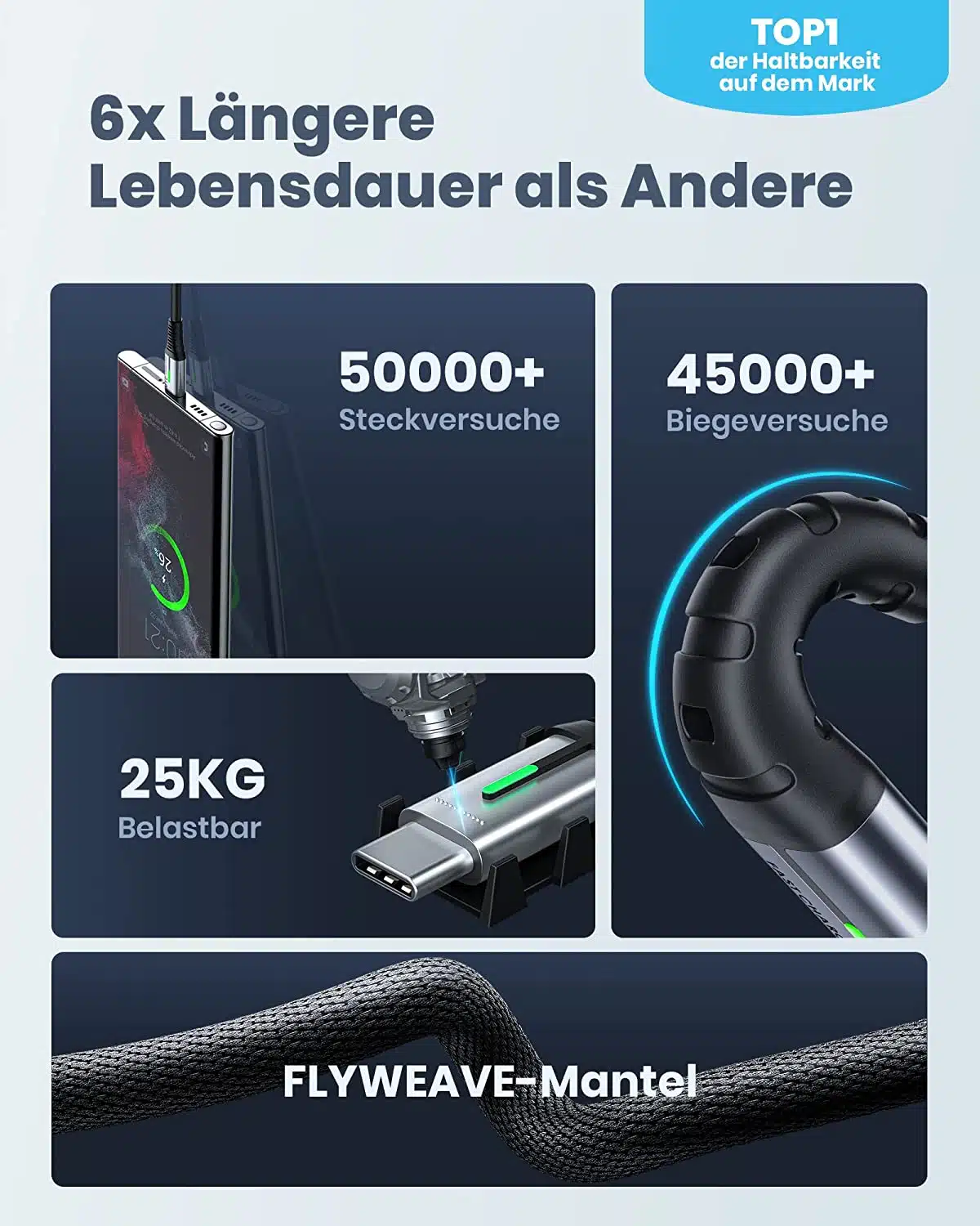 - UGREEN 240W USB-C Schnellladekabel (2M):