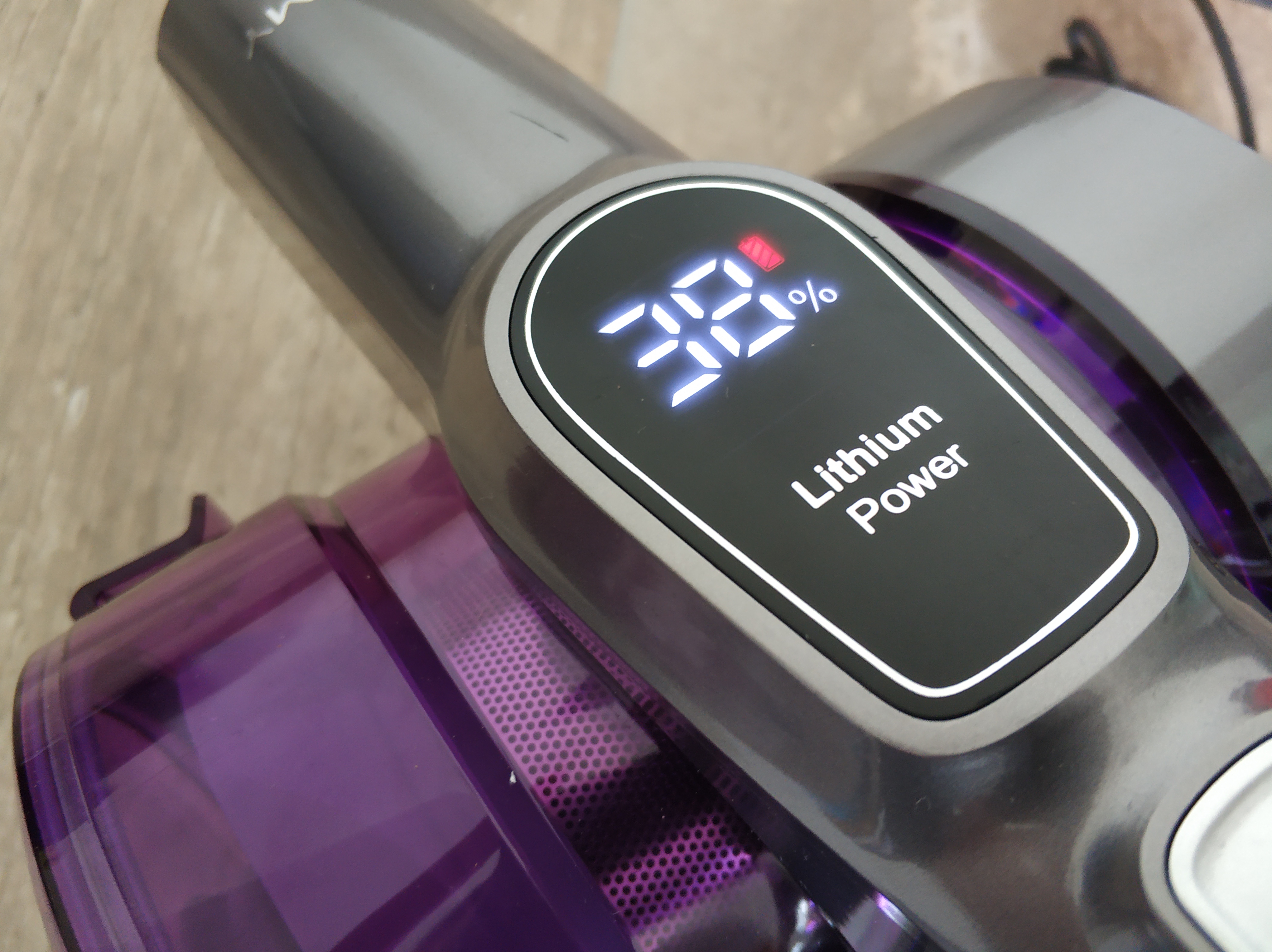 Nach mehreren Testrunden mit dem Jimmy wird aber deutlich, dass die Akkustandanzeige nur als Richtwert gesehen darf und nicht hundertprozentig stimmen kann. Also nice to have, geht aber besser – siehe Display des Dyson V11 Absolute oder Dreame V11.