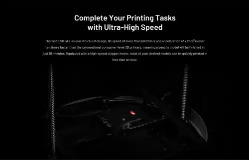 Jedenfalls erscheint es naheliegend, dass man diese (vermeintlichen) bauartbedingten Vorteile auch in Form eines expliziten Lautstärke- und Vibrationsvergleichs zu Bambu Labs X1 hier und hier betont. Das Feature-Feuerwerk endet hier aber noch nicht.
