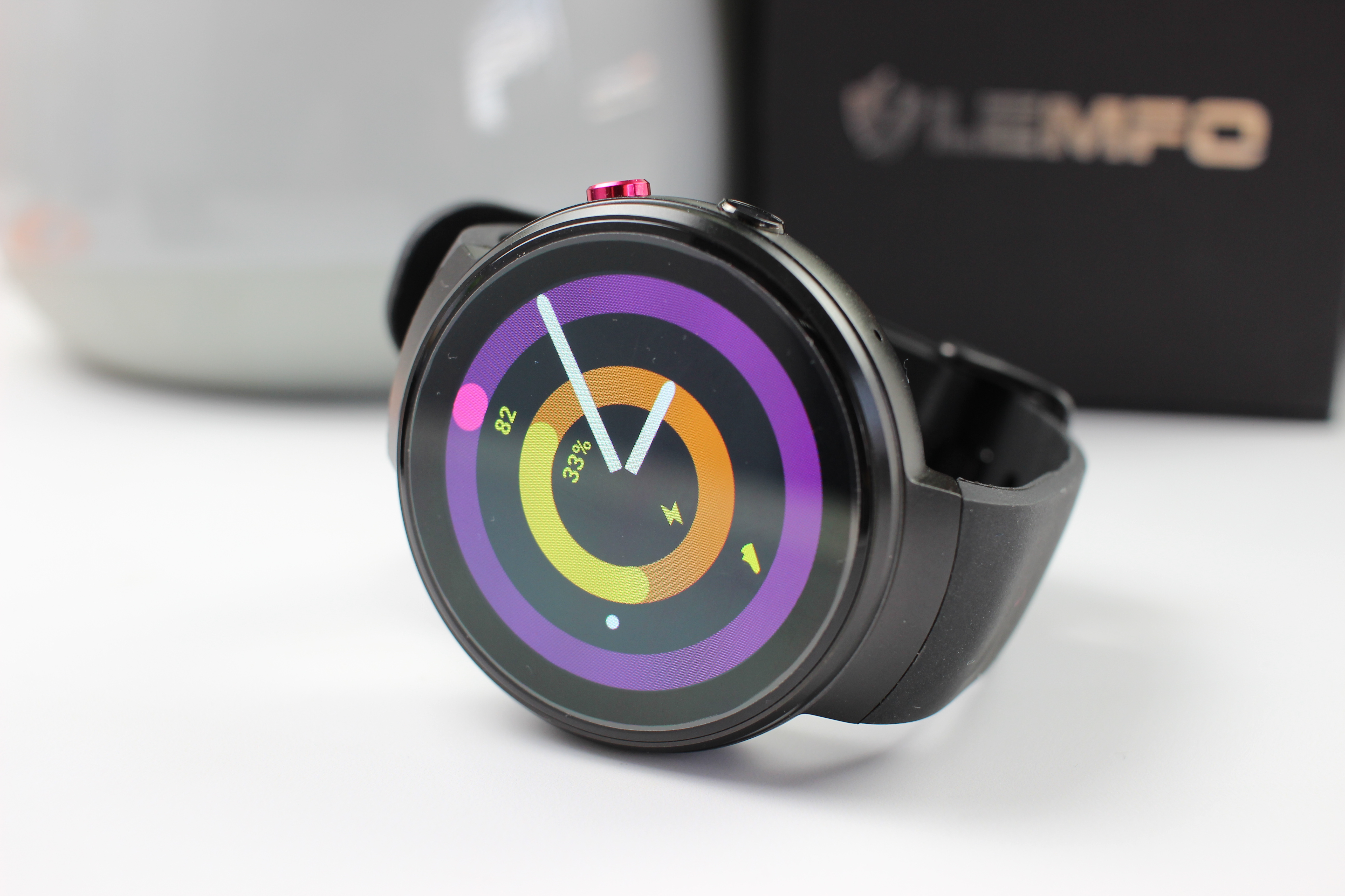 Ein Vorteil gegenüber anderen Smarwatches ist die hier verwendete Panelart. Denn LEMFO setzt hier auf ein AMOLED-Display, welches insgesamt ein gutes Kontrastverhältnis bietet und energiesparend ist. Das Kontrastverhältnis macht sich definitiv im Alltag bemerkbar, auch können die satten Farben dafür sorgen, dass man das Display gerne anschaut und bedient. Die Watchfaces können sich ebenfalls sehen lassen, davon stehen auch eine Vielzahl von zum Download bereit.