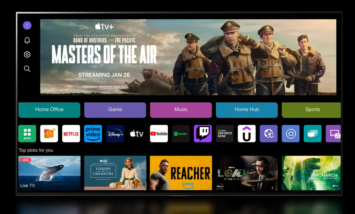 Auf dem Fernseher läuft direkt webOS 24, welches alle gängigen Apps unterstützt. Außerdem verspricht der Hersteller vier Betriebssystemupgrades. Ein Fernseher steht ja für gewöhnlich einige Jahre im Wohnzimmer, hier ist also für Sicherheit und neue Funktionen gesorgt.