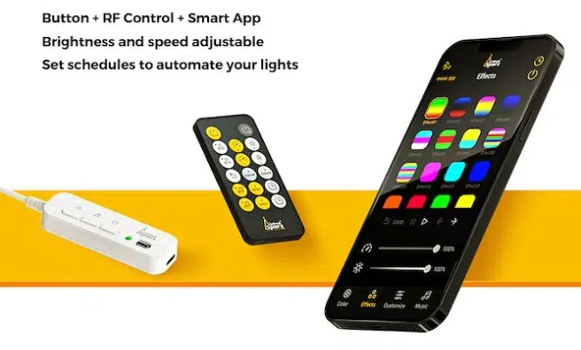 Als Steuerzentrale agiert eine App, welche für Android und iOS verfügbar sein soll. Jedoch gibt es auch eine klassische Funk-Fernbedienung und Bedienknöpfe am Controller.