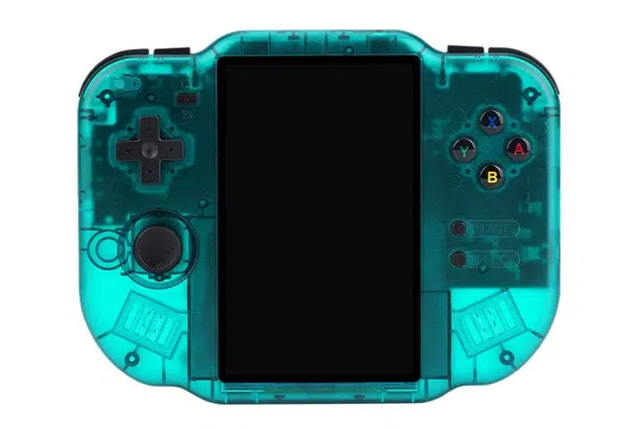 Man bekommt einen Stick und D-Pad; auf der rechten Seite gibt es nur die A/B/X/Y-Tasten sowie „Start“ und „Select“. Die Schultertasten liegen nebeneinander, wobei die innen liegende deutlich kleiner ist. Die Abmessungen des Handhelds betragen 136 x 105 x 17 mm, womit er recht kompakt ausfällt. Mit 182 g ist er auch nicht zu schwer. Wählen kann man außerdem zwischen einer schwarzen, weißen und transparenten „smaragdgrünen“ Variante.
