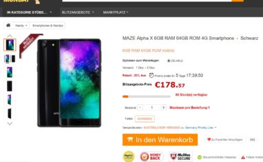 MAZE Alpha Smartphone mit 4 GB RAM & 6 Zoll Display für 101,99€