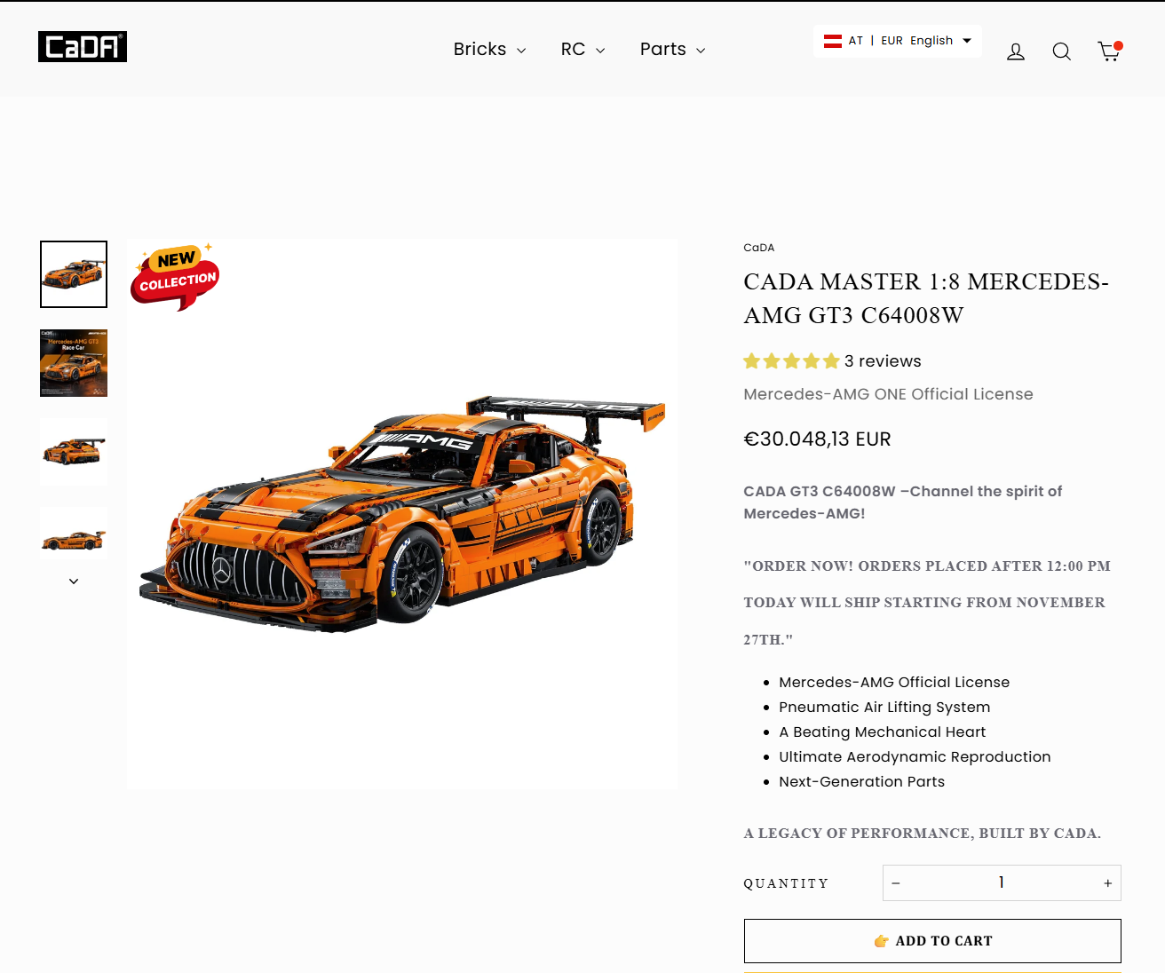 Noch ist Zeit bis Weihnachten; mit erwartbaren zwei Wochen Versanddauer ist das Set noch vor den Feiertagen bei euch. Noch kann man also zuschlagen; spätestens ab Mitte Dezember wird es knapp, wenn man sich den Mercedes unter den Baum stellen möchte.