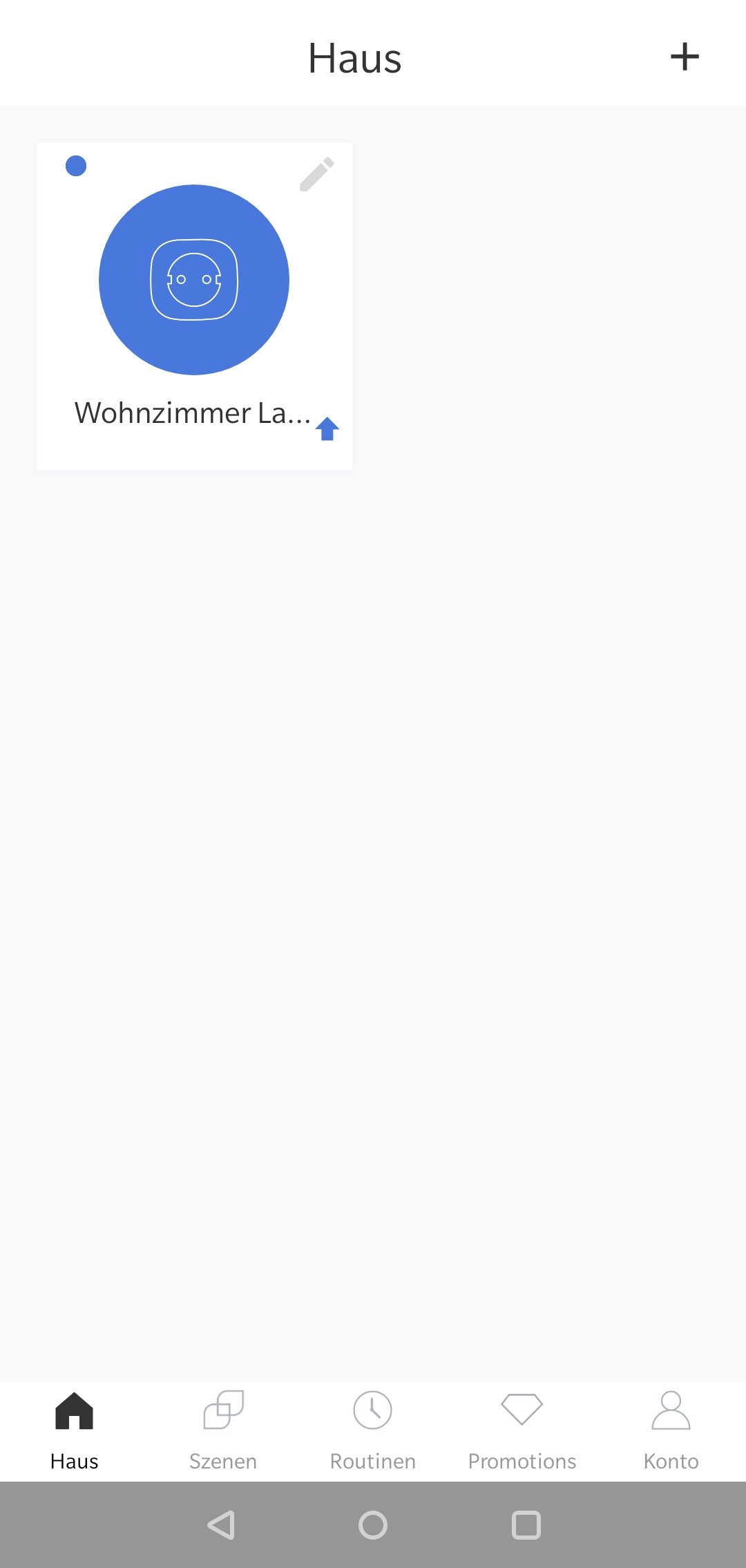 Im Bereich Haus sieht man alle verbundenen Geräte und kann sie mit einem Tipp auf den Kreis an bzw. ausstellen. Wenn der Kreis weiß markiert ist, ist das Smarthome Gerät aus, wenn der Kreis blau markiert ist, ist das Gerät an. Wenn das Gerät ausgesteckt wurde, steht dort „Unerreichbar“
