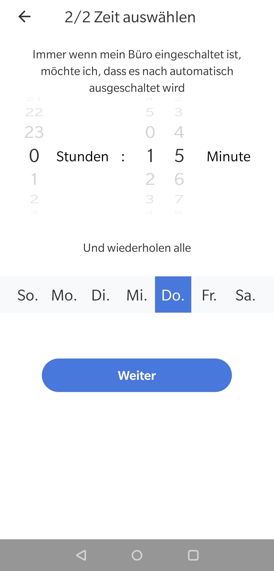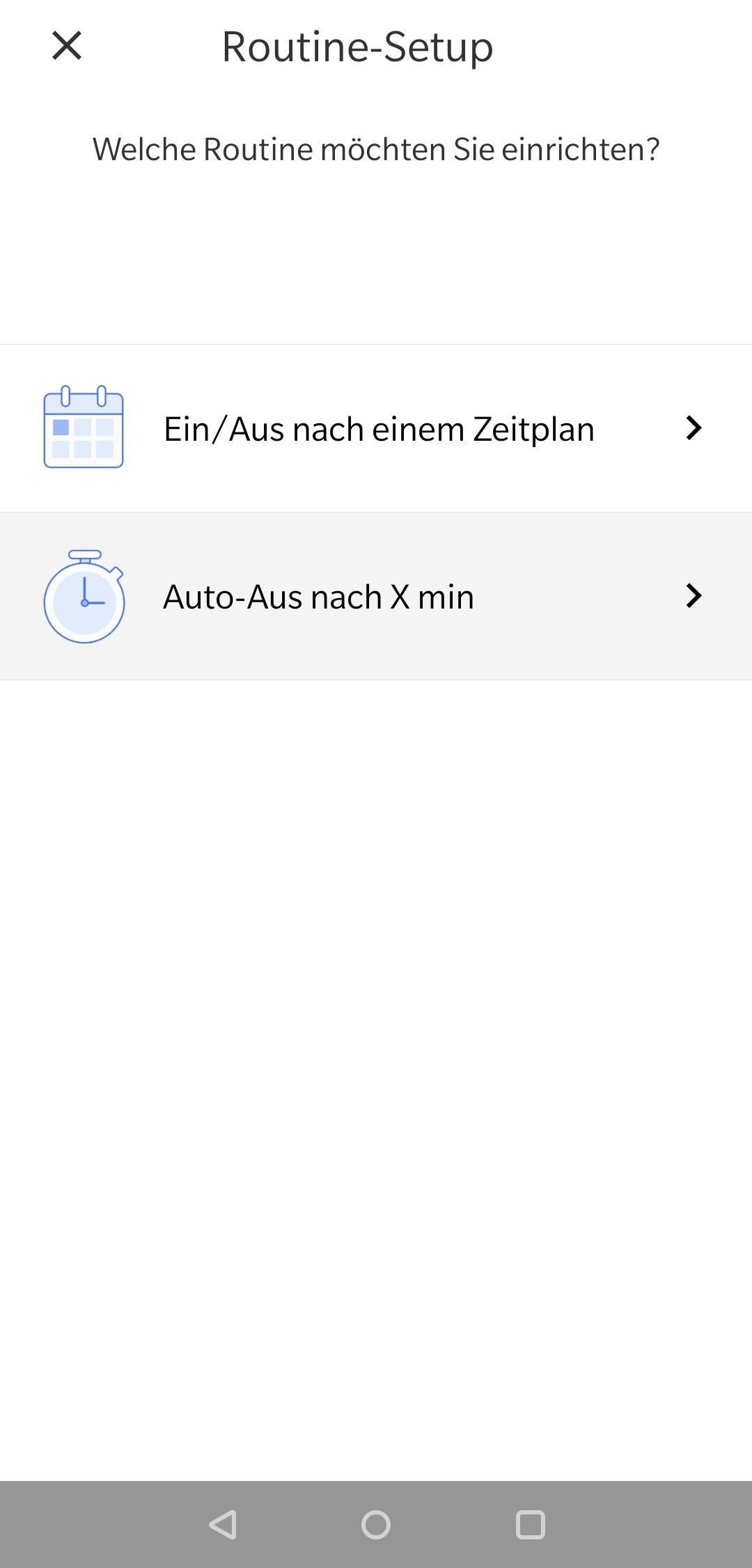 Der Punkt Routinen bietet, wie der Name es schon vermuten lässt, wiederkehrende Abläufe. Mit dem Zeitplan, mit welchem zu bestimmten Zeiten sich das Gerät an bzw. ausstellt oder die Szene wechselt.