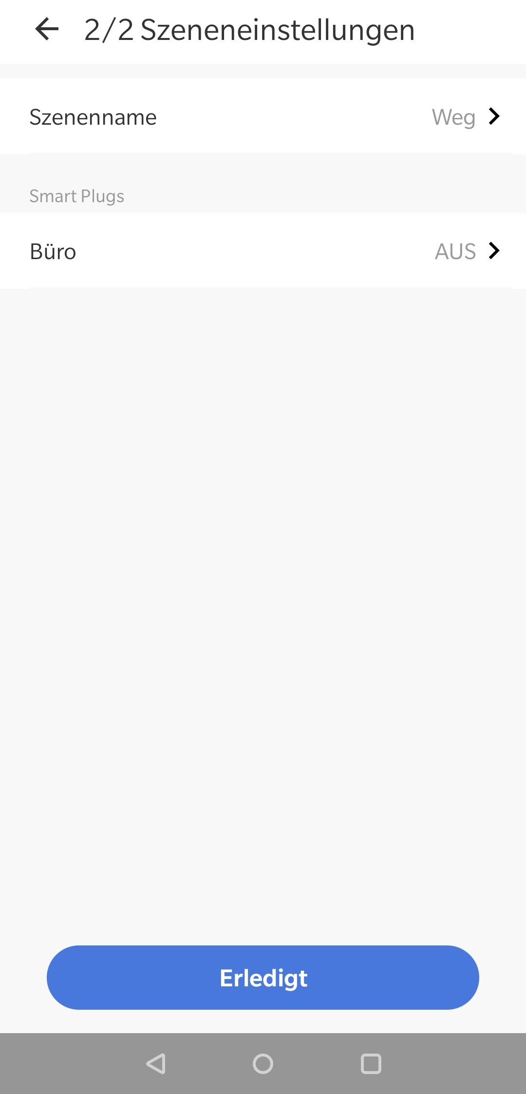 Unter dem Punkt Szene können verschiedene Szenen erstellt werden und im Alltag angewendet werden. Wenn ihr z.B. euer Haus verlasst oder schlafen gehen wollt, könnt ihr ein Szenario festlegen und damit alle Steckdosen ausstellen. Ihr könnt dafür ein Szenensymbol festlegen und den Name der Szene bestimmen. Danach könnt ihr festlegen, ob sich der Stecker ein bzw. ausschalten soll oder keine Funktion ausgeführt wird.