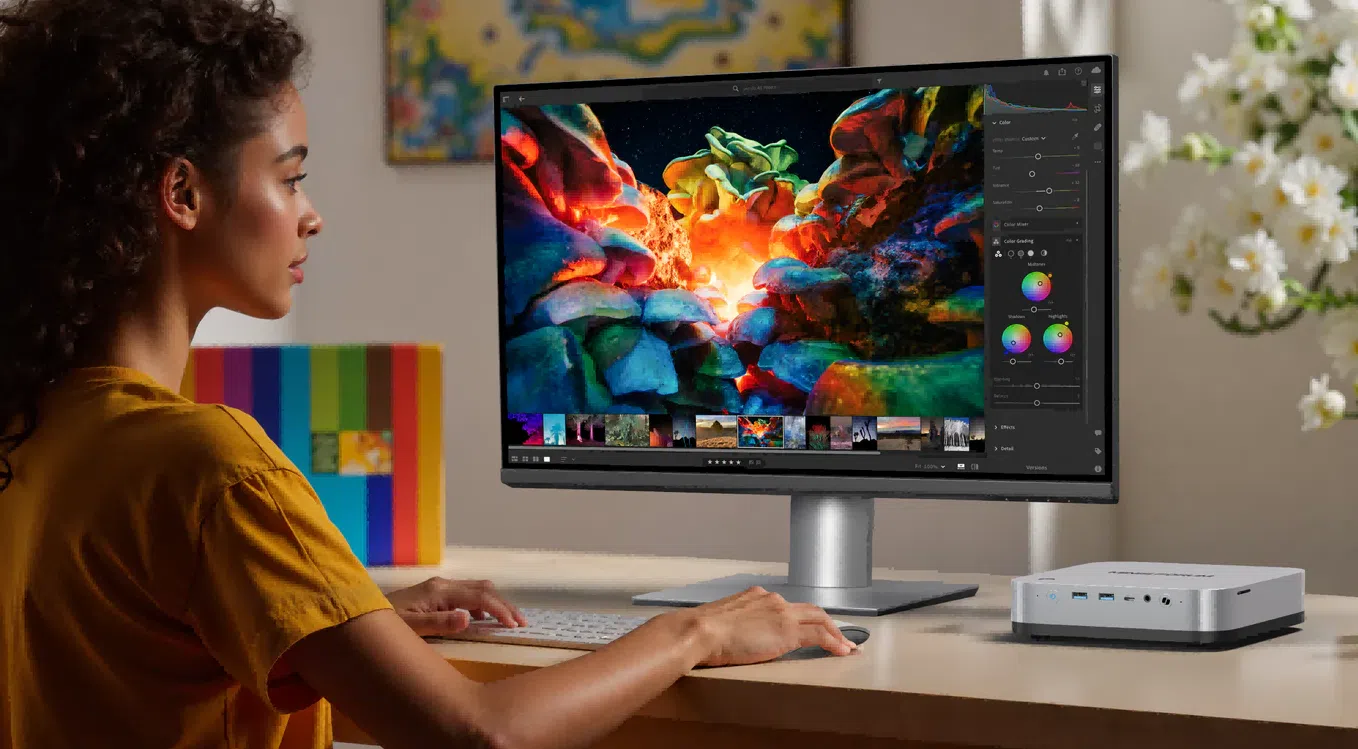 Auch unter der Haube geht es ordentlich zur Sache, denn ihr könnt bis zu 128 GB DDR5 RAM verbauen. Wer extrem viel Speicherplatz benötigt, freut sich über gleich drei M.2 PCIe 4.0 Slots, was bis zu 12 TB Speicher ermöglicht. Das ist schon eine Ansage für so ein kompaktes Gehäuse. Aufgrund der aktuellen Speicherknappheit am Markt dürfte es aber durchaus sehr teuer werden, den Mini-PC voll zu bestücken.