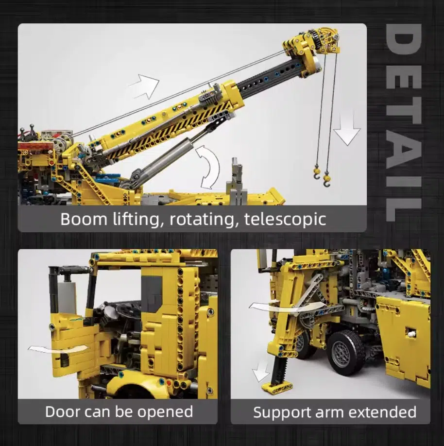 Das Modell besteht aus 4883 Teilen und erreicht im fertiggestellten Zustand eine Gesamtlänge von über 60 Zentimetern. Neben der Eigenschaft als klassisches Standmodell ist das Fahrzeug durch den Einsatz von sieben Elektromotoren vollständig fernsteuerbar. Diese Motoren ermöglichen nicht nur das Fahren und Lenken, sondern treiben auch die verschiedenen Kran- und Abschleppfunktionen an.