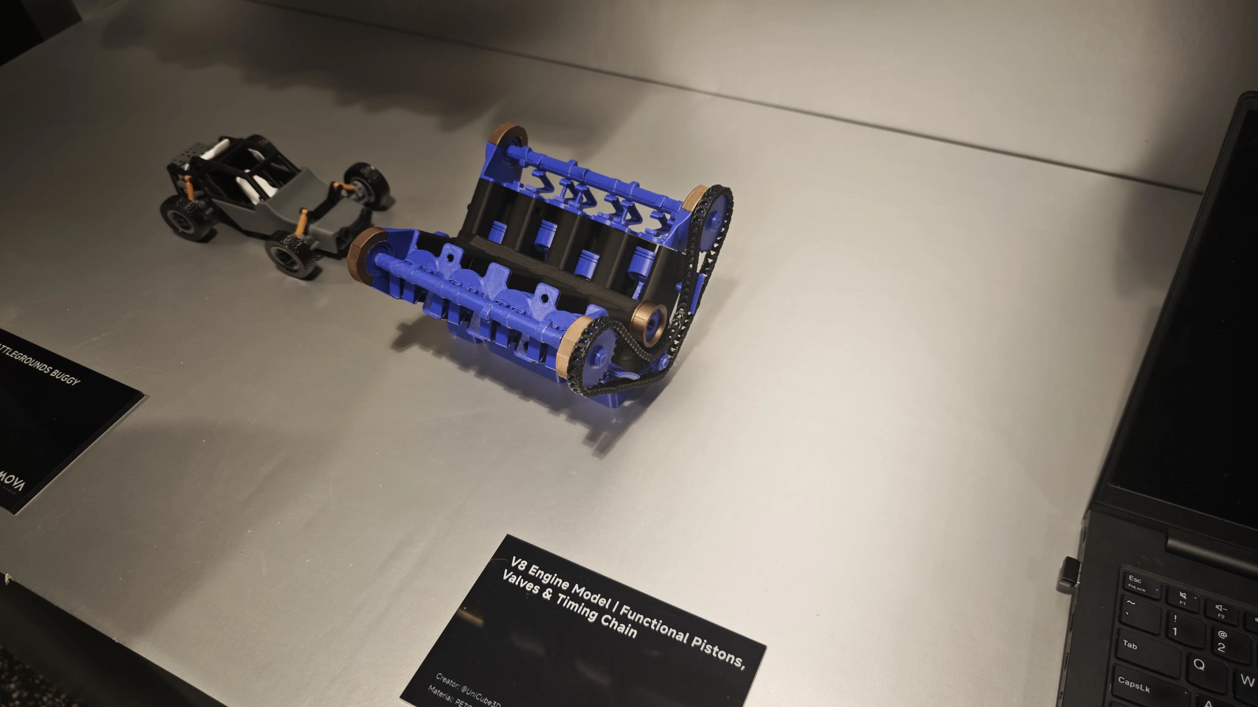 Unser Kollege Fabian konnte die ersten gedruckten Ausstellungsstücke vor Ort begutachten. Beispielsweise sieht ein mehrfarbig gedruckter V8-Motor ziemlich schick aus und lässt bei uns sicherlich Vorfreude aufkommen.