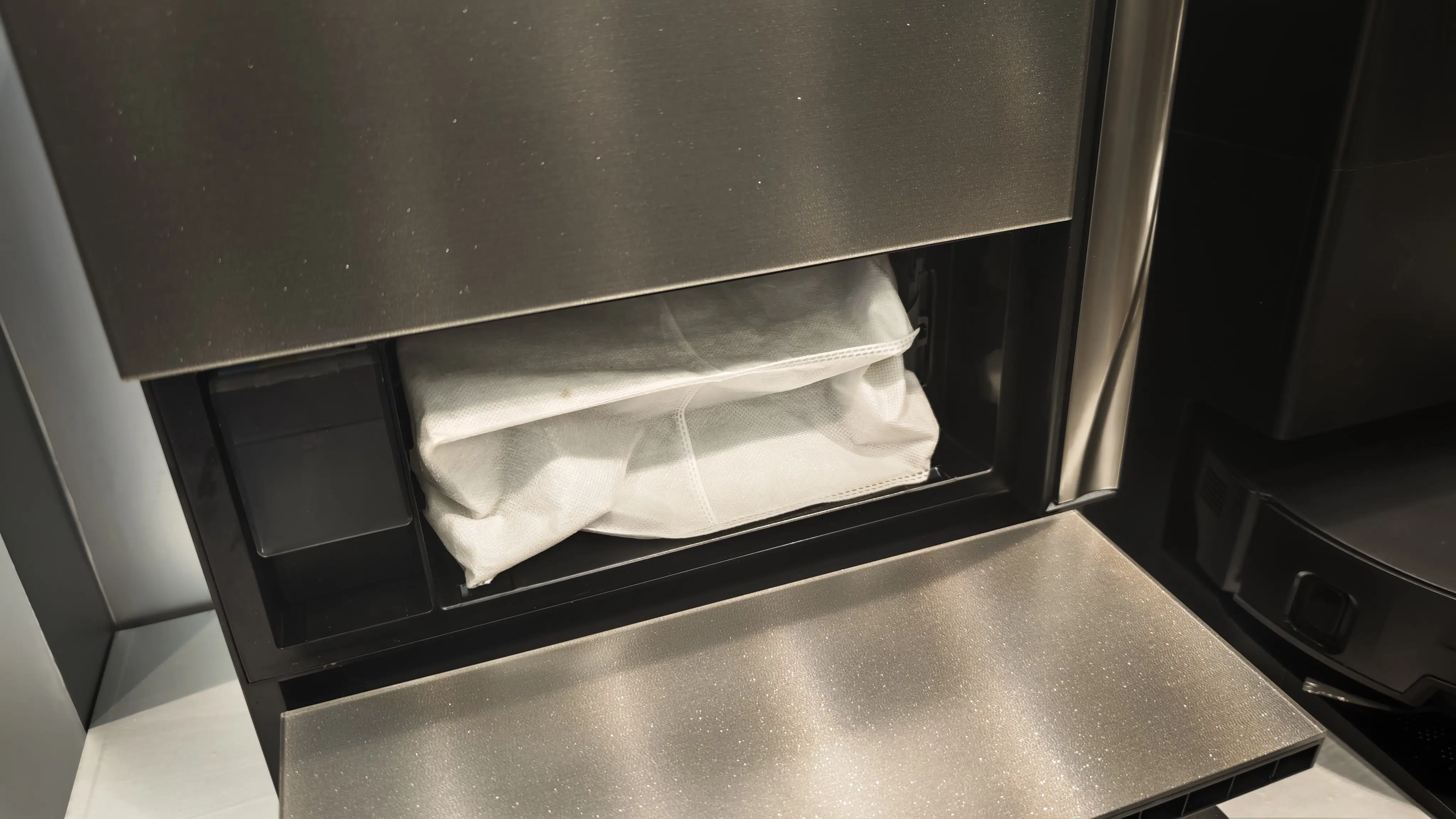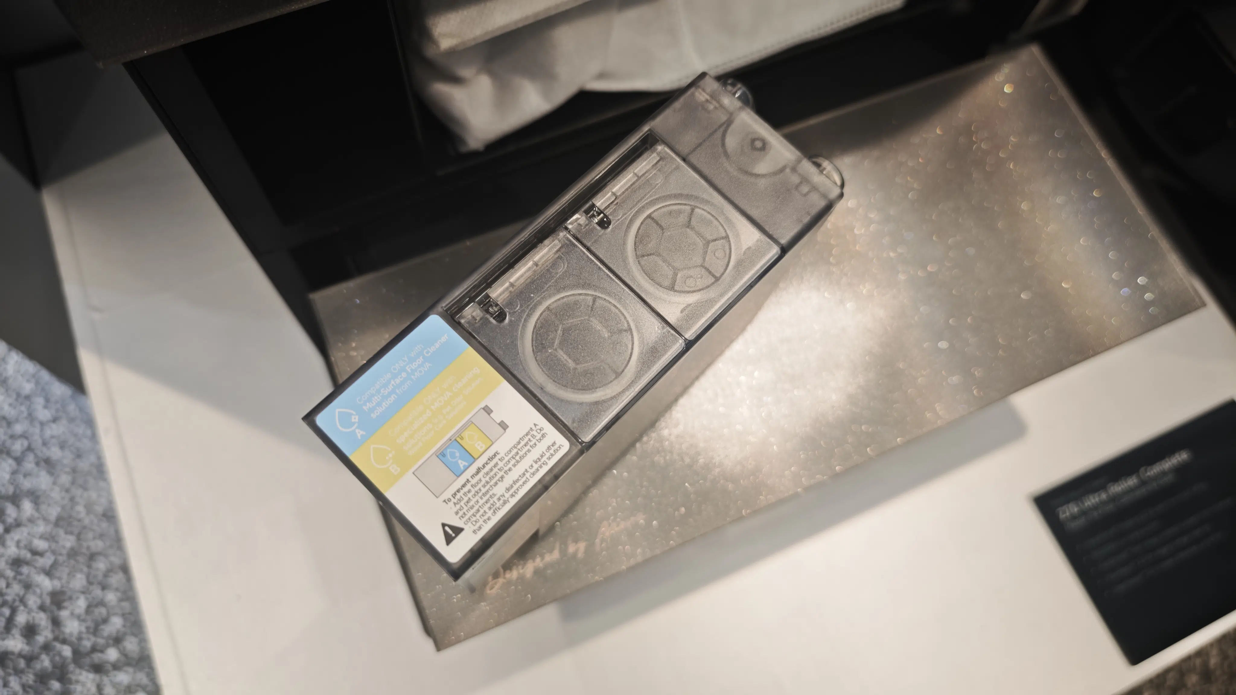 Optisch macht der Roboter mit seiner schicken Naturstein-Optik schon mal einiges her. Im Inneren steckt aber ordentlich Leistung, denn hier liefert man stolze 36.000 Pa Saugkraft.