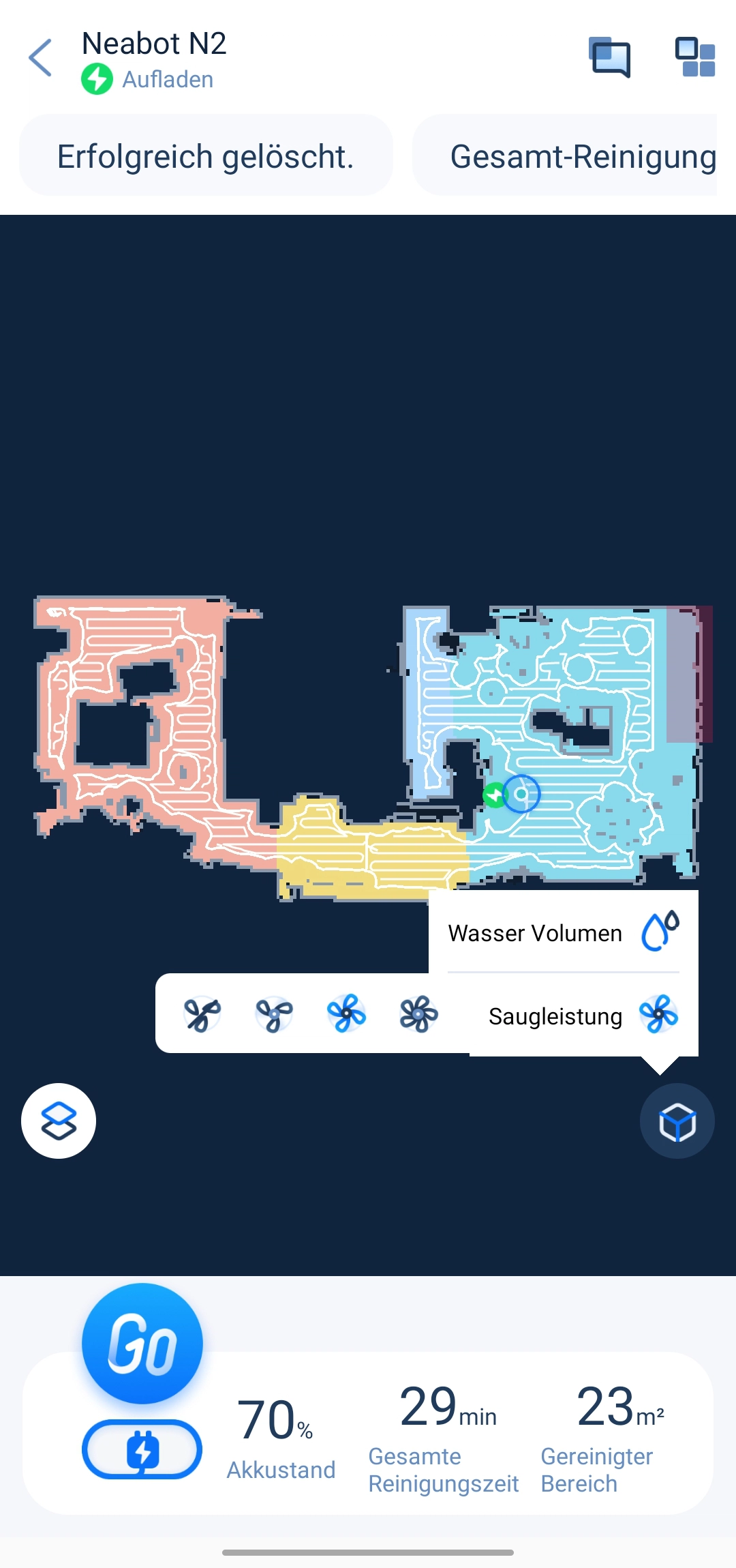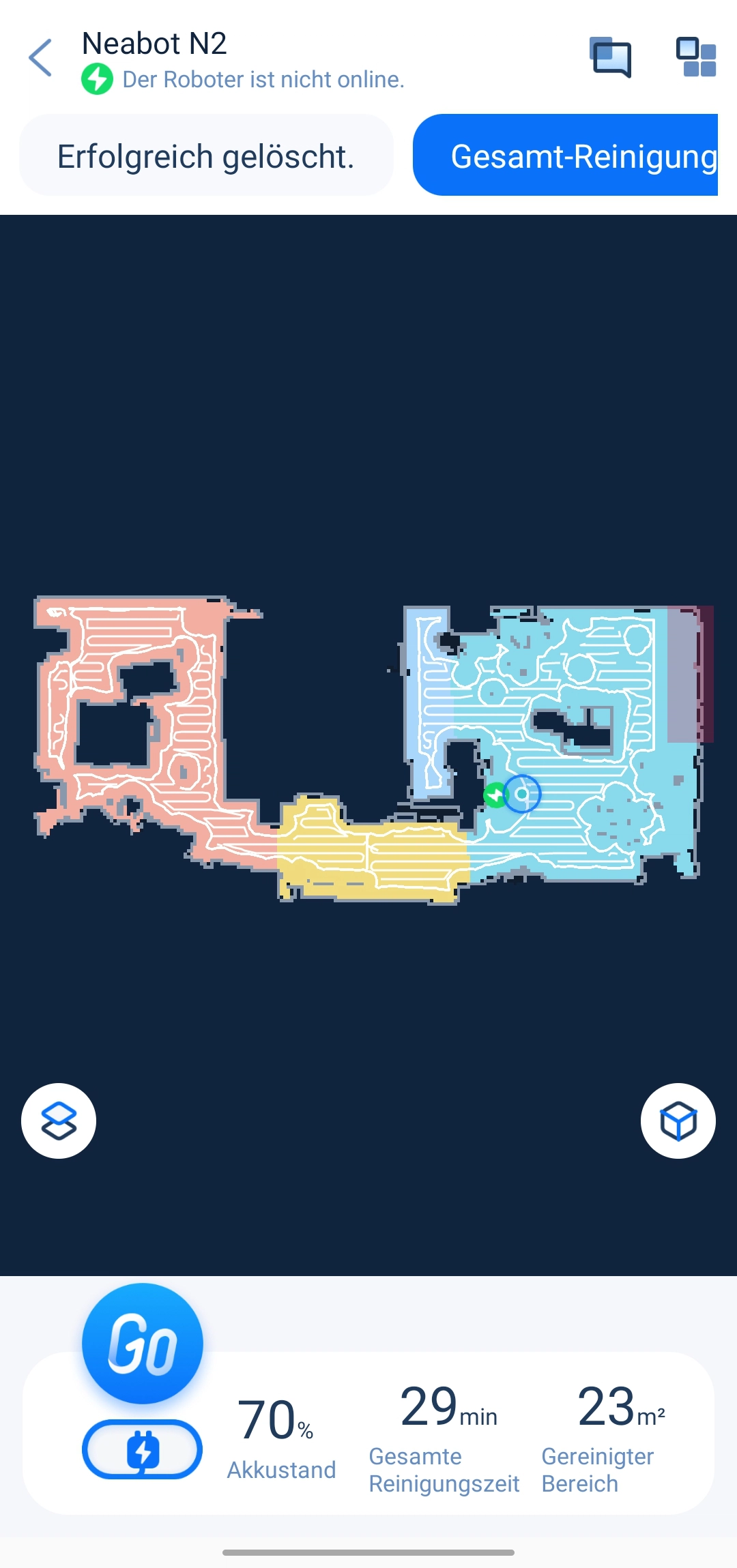 Eine App hat der Neabot N2 natürlich auch, welche es für Android und iOS gibt. Über diese konnten wir uns bereits beim Q11 einen Eindruck machen. Seitdem hat man sie aber auch auf Deutsch verfügbar gemacht, weswegen diese leichte Hürde jetzt auch genommen wurde. Zwar gibt es einzelne Übersetzungsfehler, aber die Übersetzungen sind verständlich. Beim Neabot Q11 hatten wir noch leichte Verbindungsprobleme mit dem Wi-Fi, jedoch ging es hier auf Anhieb ohne Probleme.