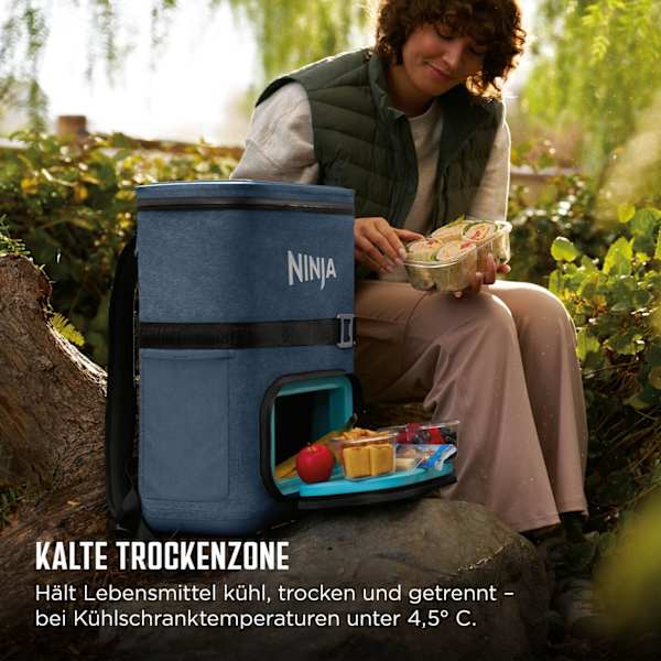 Das Hauptproblem herkömmlicher Kühltaschen ist der direkte Kontakt zum Eis. Sobald dieses schmilzt, schwimmt der Proviant im Wasser. Ninja setzt hier auf die sogenannte FrostVault-Technologie. Das System nutzt eine integrierte, kalte Trockenzone, die Lebensmittel räumlich vom Eis trennt, welches oben eingefüllt wird.