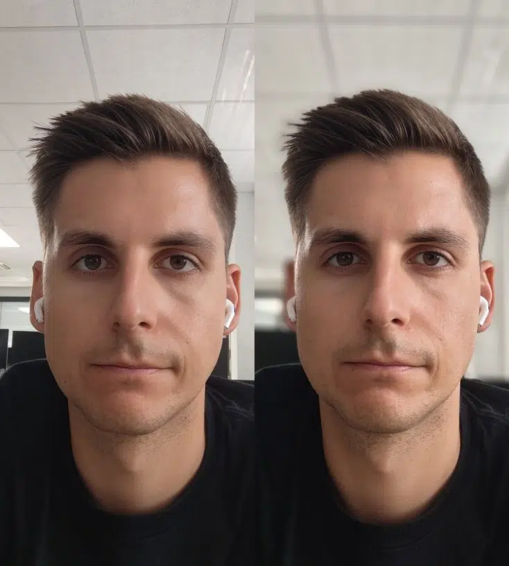 Die 32 Megapixel Selfie-Cam liefert ebenfalls zufriedenstellende Resultate für Selbstportraits. Apropos Portraits: Ein Portrait-Modus mit künstlichen Bokeh gibt es ebenfalls. Die Randerkennung ist relativ präzise, das Bokeh kann man im Nachhinein aber nur mit Google One-Abo anpassen, Xiaomi bietet das z.B. in MIUI intern an. Nur bei Gegenlicht überbelichtet das Phone (2) bei Selfies relativ schnell.