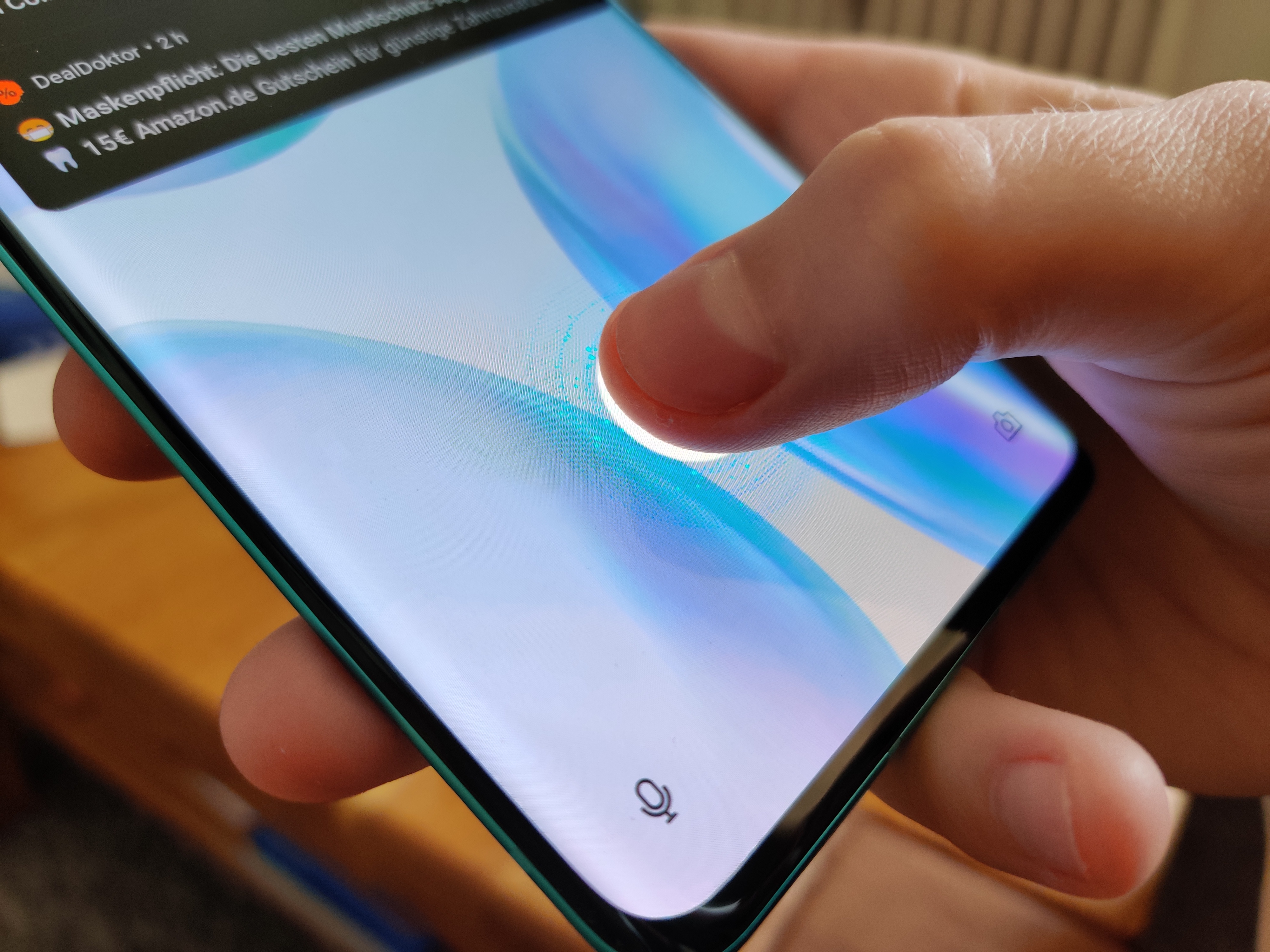 Da wir die große Version mit 12/256GB testen, kommen wir in den Genuss der matten Rückseite. Die kleine Version mit 8/128GB gibt es nämlich leider nur im spiegelnden Schwarz. Abgesehen davon, dass ,meiner Meinung nach, matte Rückseiten generell besser aussehen, fühlen sie sich auch besser an. Für das matte Glas fällt mir kein passenderes Wort als „samtig“ ein. Farblich wechselt die Glacial Green Version je nach Betrachtungswinkel und Lichteinfall zwischen Türkis, Grün und einem hellen Blauton.