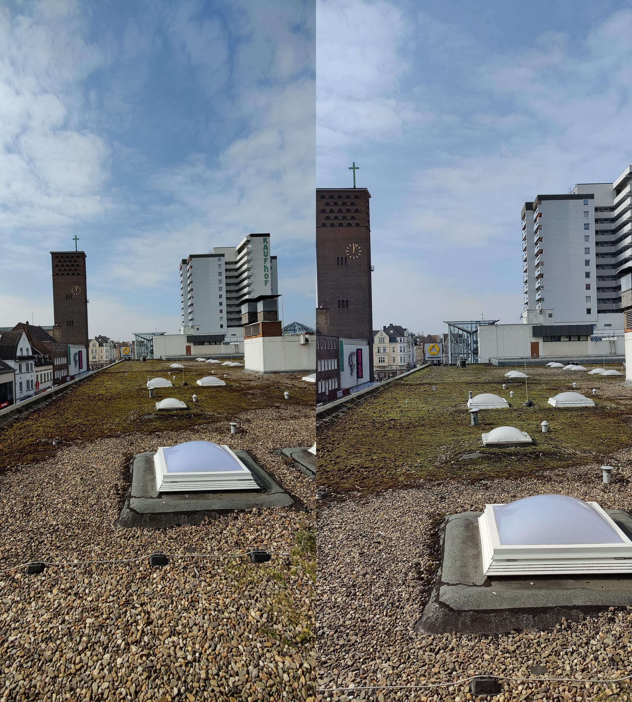Mein kleines Highlight die Ultraweitwinkelkamera, die der Hauptkamera in nicht viel nachsteht. Gerade bei Mittelklasse-Modellen ist es ein Problem, dass der Qualitätsunterschied zwischen Haupt- und Ultraweitwinkelkamera so enorm ist, dass man sie sofort Unterscheiden kann. Das ist beim OnePlus 9 nicht der Fall. Der Hersteller schafft es hier die Farben zu matchen wie man so schön sagt. Bei guten Lichtverhältnissen fällt auf, dass die Hauptkamera tendenziell etwas heller ist. In puncto Schärfe sieht man erst beim Reinzoomen gröbere Unterschiede – stark!