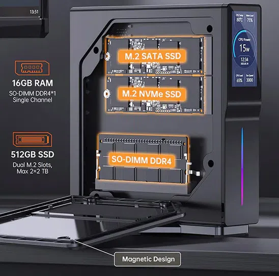 OUVIS S1 Mini PC: Integrierter Bildschirm & Wartungsklappe