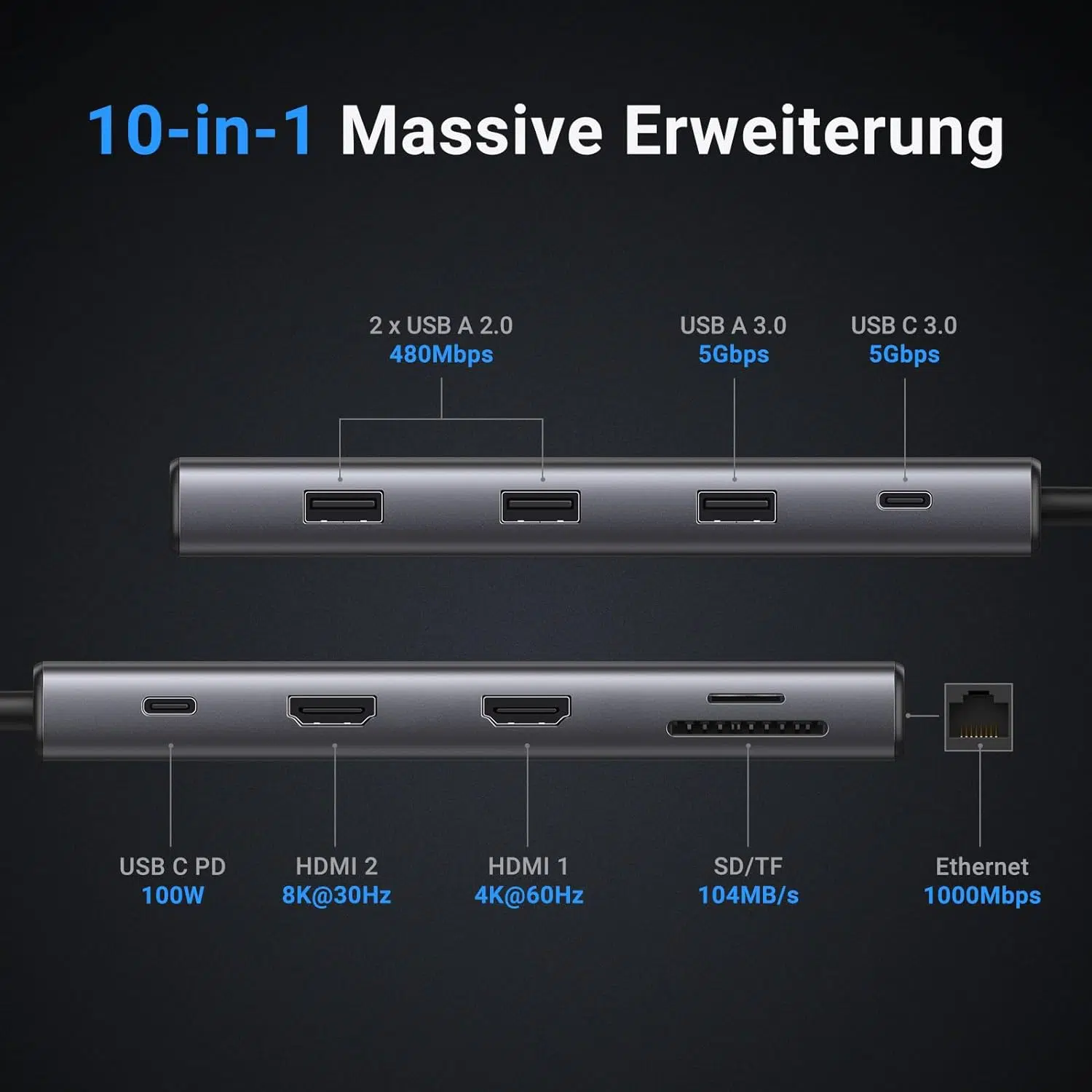 Auch wenn zum Beispiel Apple den neueren MacBook Pro zumindest einige Ports zurückgegeben hat, für die Air-Modelle und ganz viele weitere Notebooks ist ein USB-C Hub inzwischen so wichtig wie das Netzteil. Mit dem UGREEN 7-in-1 USB-C Hub bekommt man sogar alle relevanten Anschlüsse in einem Hub.
