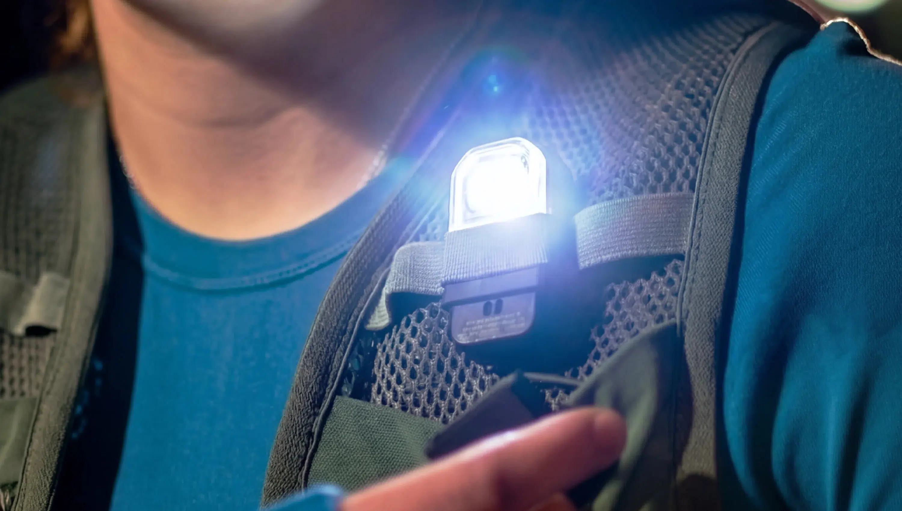 Im Lieferumfang ist zur einfachen Befestigung ein Karabinerring enthalten. Zudem ist der Halo mit IP66 gegen Wasser und Staub geschützt.