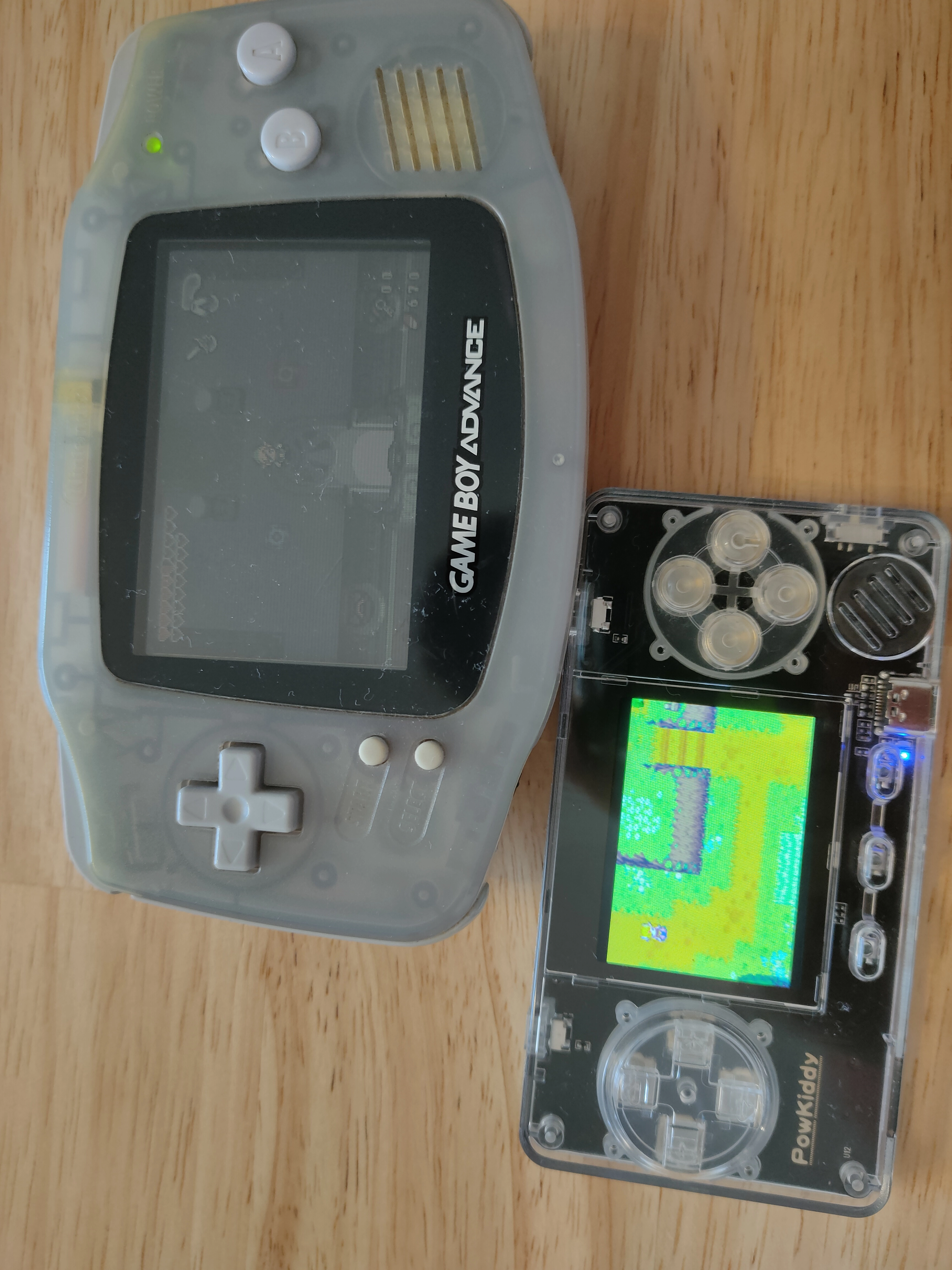 Ich habe dann tatsächlich mal ein paar meiner alten Spiele rausgekramt und die jeweiligen ROMs auf das Gerät gepackt. Fühlte sich an wie ein Trip in die Vergangenheit. Man muss dem Gameboy ja zugute halten, dass er nach über 25 Jahren noch tadellos funktioniert. Das helle Display des A66 ziehe ich ihm heute aber dennoch vor. Schwer zu glauben, dass wir damals ohne beleuchtete Displays auskommen mussten. Daher erkennt man auf den Fotos auch kaum etwas auf den Gameboy-Displays. 🙂