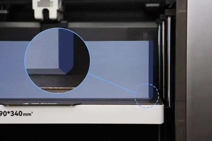 Das neu entwickelte Hochtemperatur-Hotend erreicht bis zu 370 °C und verfügt über eine Keramik-Einführhülse sowie ein neues Wärmeableitmodul, um Verstopfungen weiter zu reduzieren. Mit einem hohen Durchfluss von 40 mm³/s ist es darauf ausgelegt, auch bei hohen Geschwindigkeiten noch genügend Material zu schmelzen und ist damit ab Werk für anspruchsvolle technische Verbundwerkstoffe wie PPS-CF bereit.