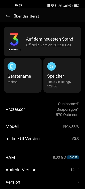 | Betriebssystem | Realme UI auf Basis von Android 11 |