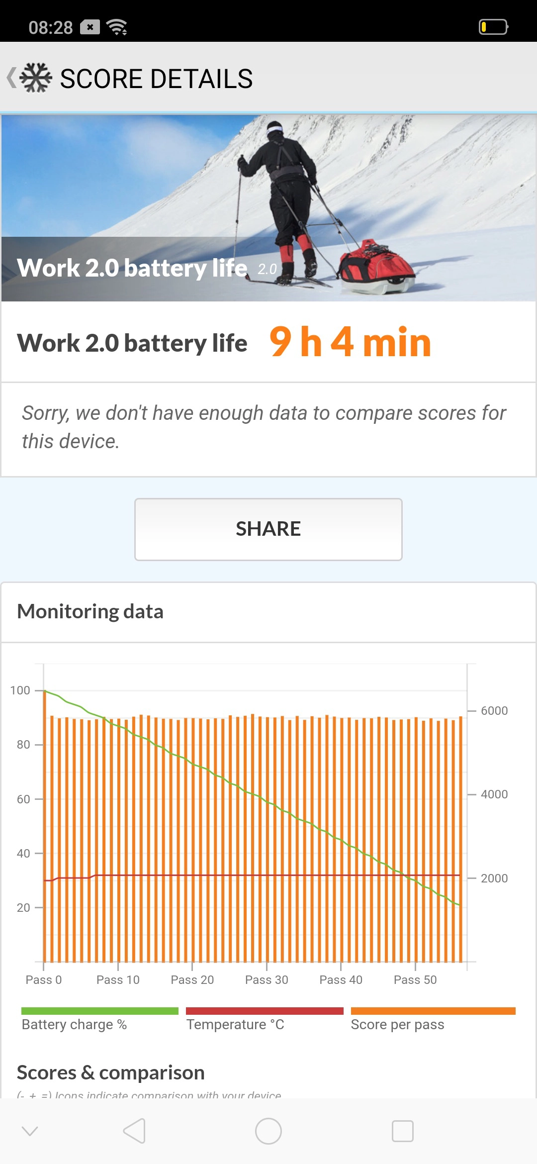 Im Benchmark wurden es neun Stunden, in der Praxis kam ich locker einen Tag damit aus. Im Verlaufe des anschließenden Vormittags musste das Handy aber an das Ladegerät.