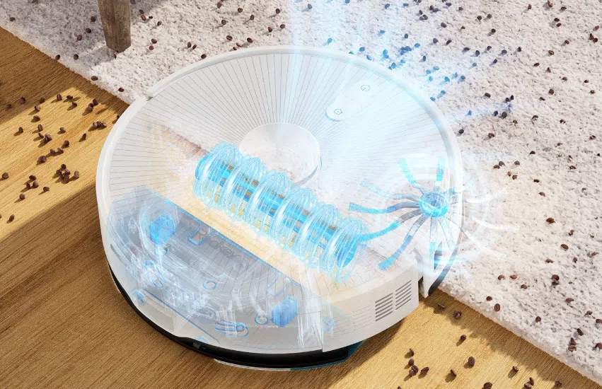 Weitere Sensoren befinden sich an der Unterseite, um Abstürze zu verhindern oder die Saugkraft auf Teppichen zu erhöhen. Türschwellen und Co. mit einer Höhe von bis zu 18 mm soll er überqueren können.