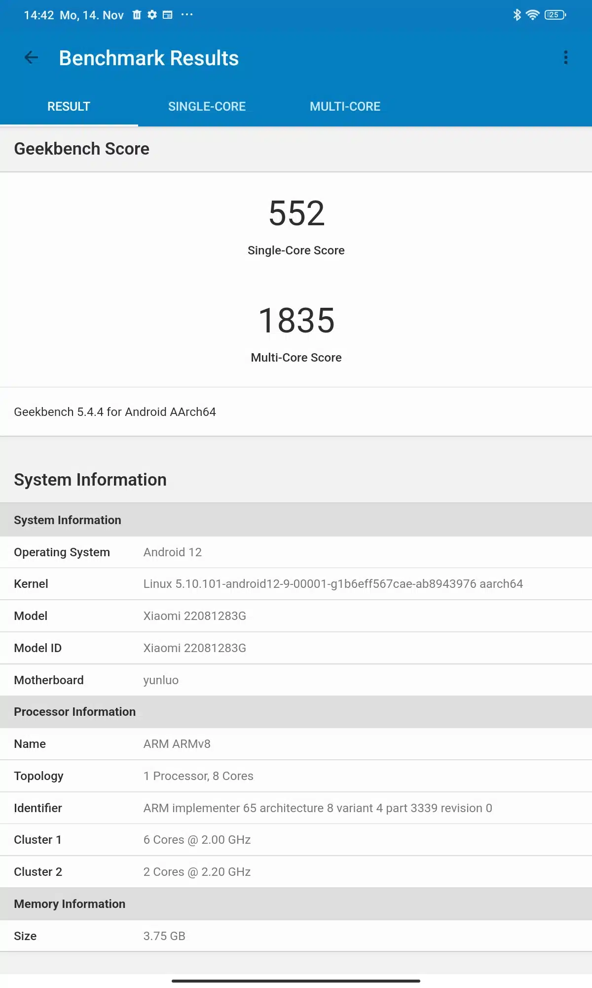 | Betriebssystem | MIUI for Pad aus Basis von Android 12 |