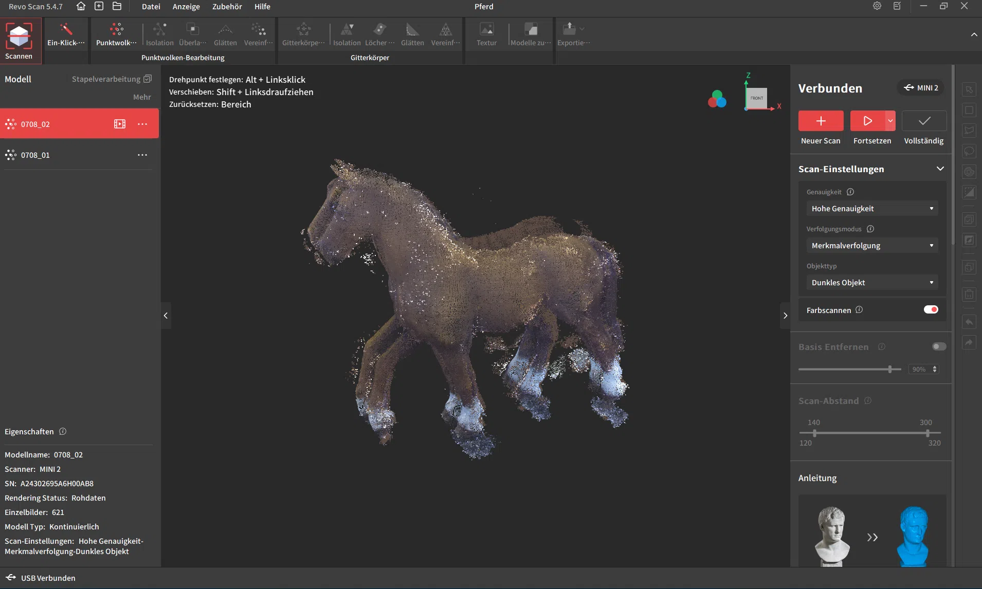 Der Revopoint Mini 2 stellt eine konsequente Weiterentwicklung des Vorgängers dar, überzeugt dabei aber weniger durch sein moderates Hardware-Upgrade als seine deutlich bessere Performance im Zusammenspiel mit der aktuellen Revo Scan 5 Software.