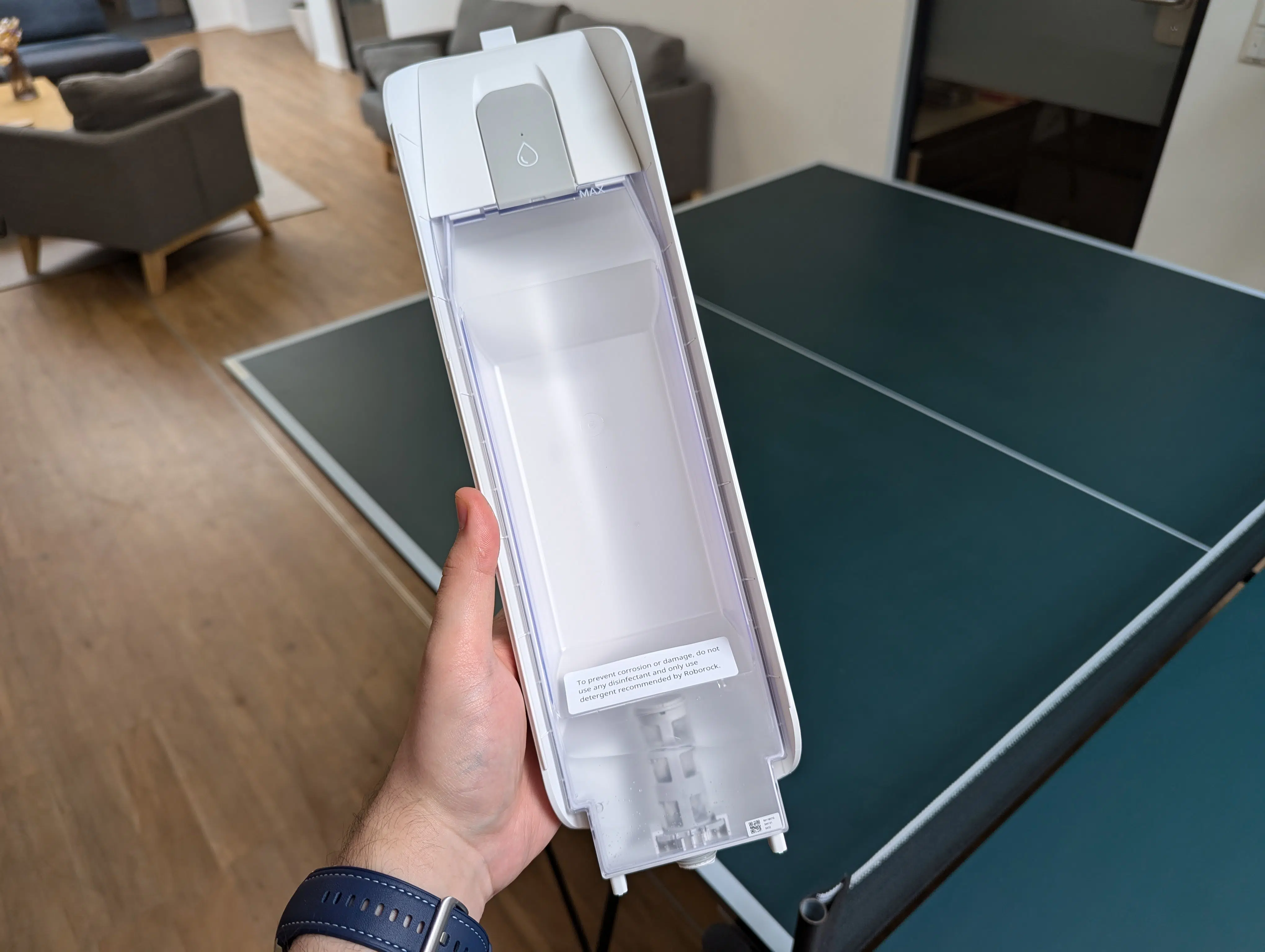 Gegenüber teureren Modellen gibt es hier aber keine Möglichkeit einen Reinigungsmitteltank zu befüllen und so automatisch dieses mit dem Wischwasser zu versetzen. Hier muss man selber beim Auffüllen des Wassertanks tätig werden. Wie gewohnt empfiehlt Roborock lediglich ihren eigenen Reinigern zu nutzen, um Schänden am Gerät zu vermeiden.