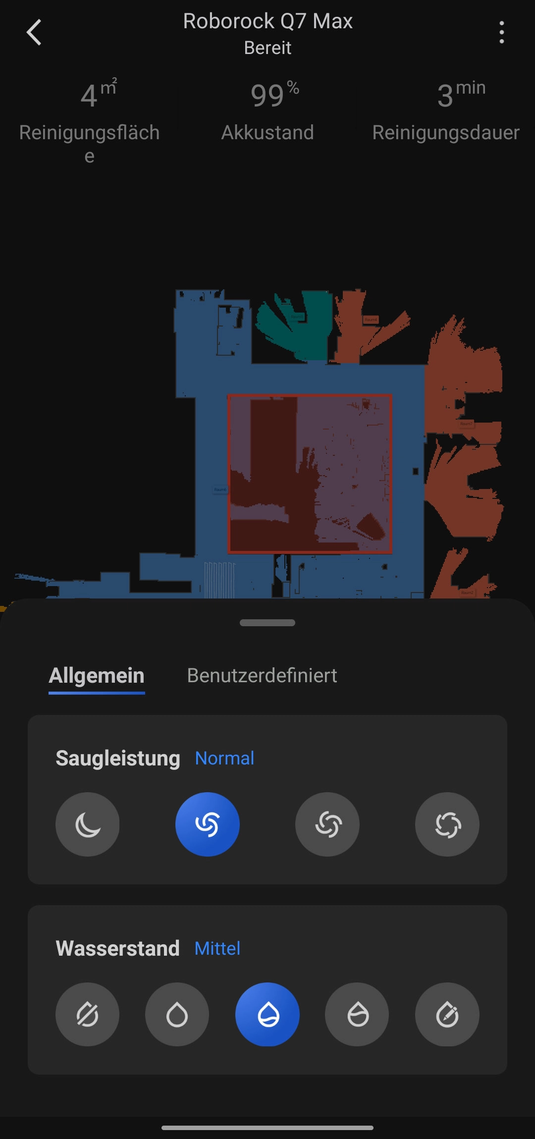 Gleich auf mehrere Arten kann man den Q7 Max zum Reinigen schicken. Einmal der Standardmodus, bei dem der Saugroboter die komplette Fläche reinigt. Dann gibt es jedoch auch die Möglichkeit, einzelne Räume oder Flächen zu reinigen.