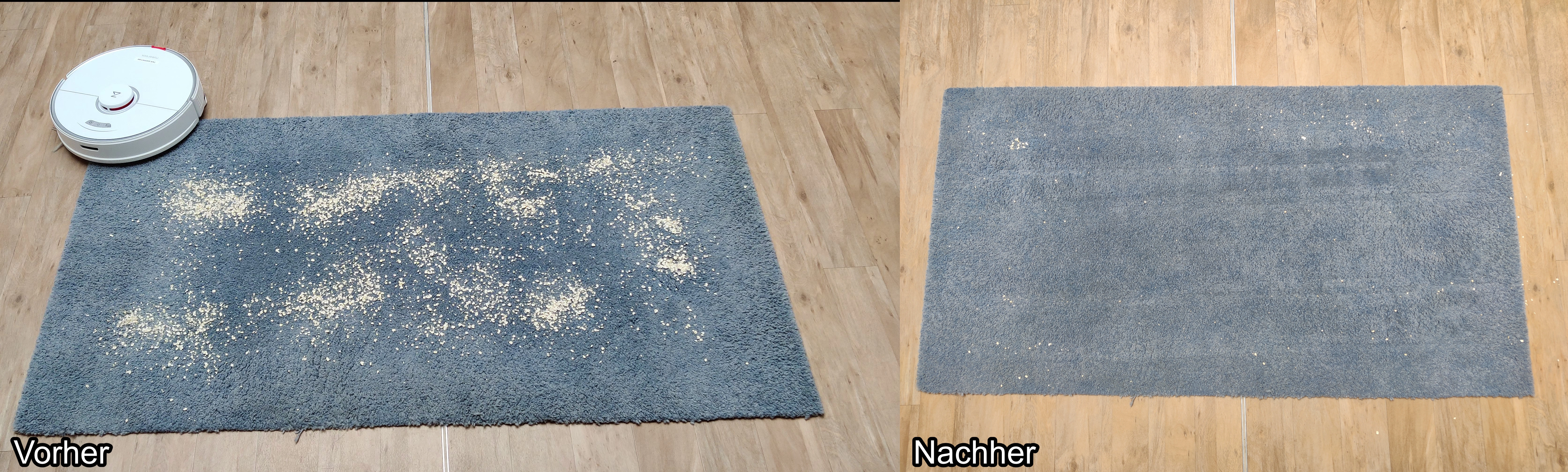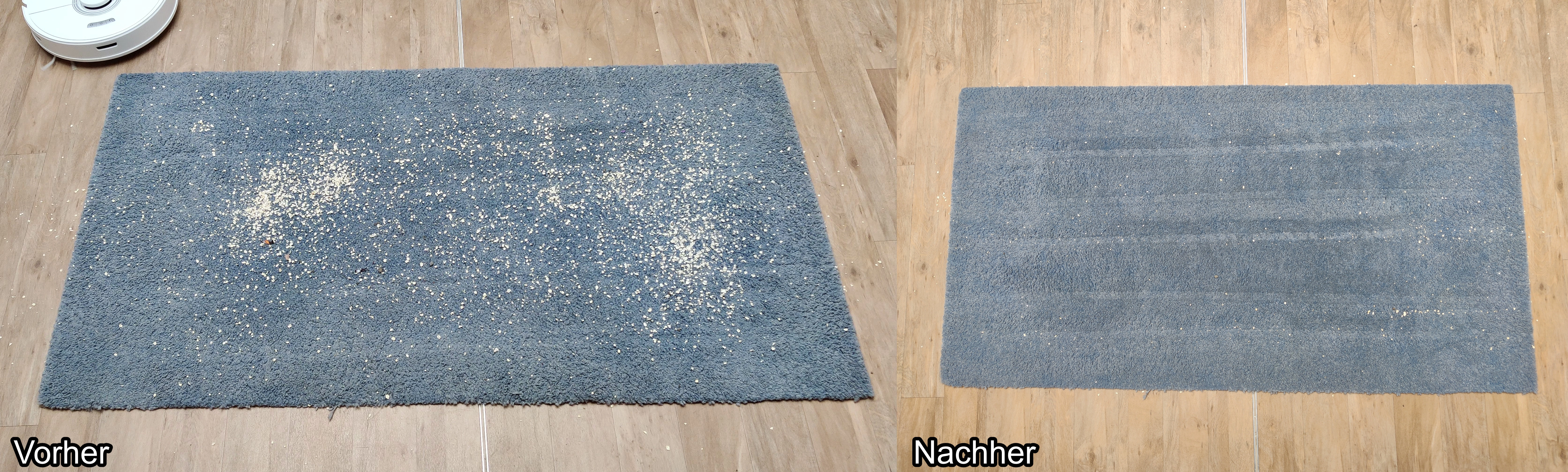 Mit der höheren Saugleistung erwartet man jetzt natürlich auch eine bessere Saugleistung als beim Roborock S7, der ja auch schon einen verbesserten S5 Max darstellt. In der Praxis ist das aber nicht unbedingt der Fall, denn beim Hauptgegner von Saugrobotern, die Teppiche, performt der Roborock Q7 Max ziemlich ähnlich. Teilweise kommt er mir aber etwas schneller vor und er düst durch die vier Wände. Aber man muss sagen, dass eine ähnliche Performance wie der Roborock S7 definitiv kein schlechtes Ergebnis ist. Wenn man seinen Teppich nicht gerade alle paar Tage komplett zumüllt, dann wird der auch sauber. Von Hartböden muss man gar nicht erst sprechen, die werden zuverlässig von Staub und Schmutz gereinigt.