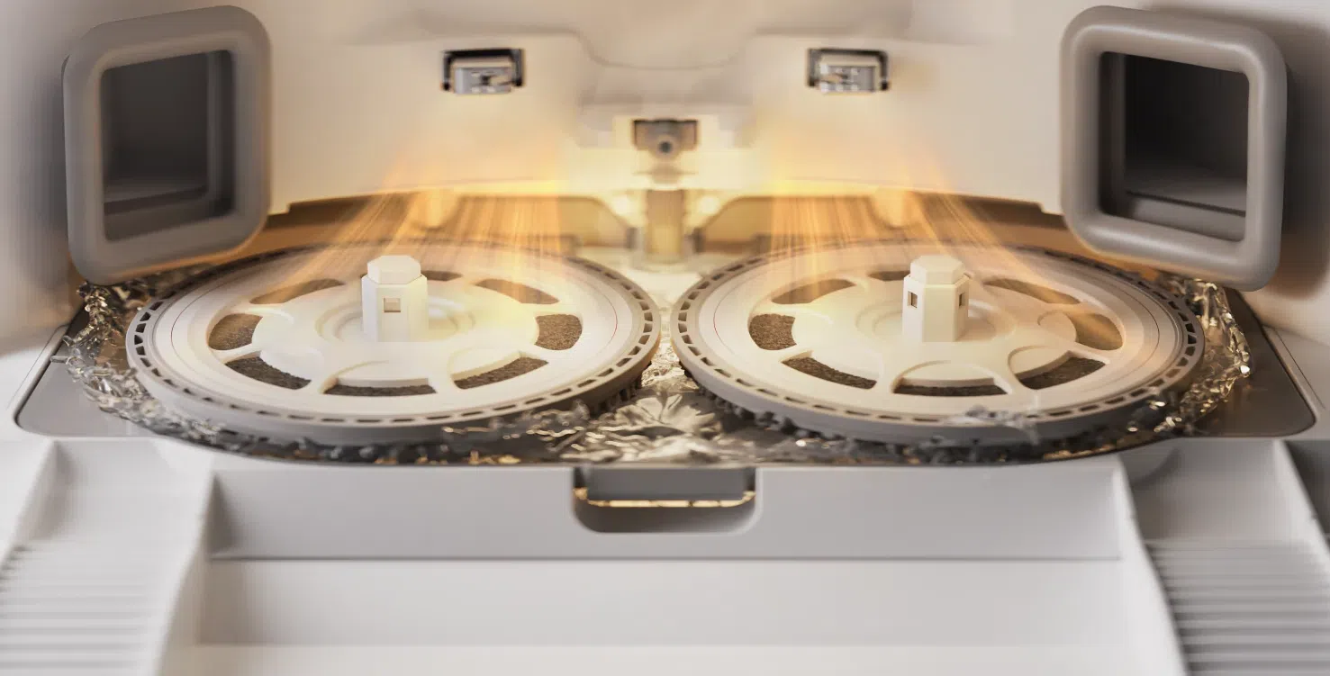 Gewischt wird beim Qrevo S Pro über zwei rotierende Wischmopps, die sich bei Teppichkontakt automatisch um 10 mm anheben. Das Wasser hierfür zieht sich der Roboter aus seinem internen 80 ml Wassertank, die Mopps werden aber auch in der Station angefeuchtet. Die wuchtige Station bietet nun auch eine Heißwasser-Moppreinigung bei 75 °C. So können auch hartnäckige Fette gelöst werden. Im Anschluss werden die feuchten Pads mit 45 °C warmer Luft getrocknet.
