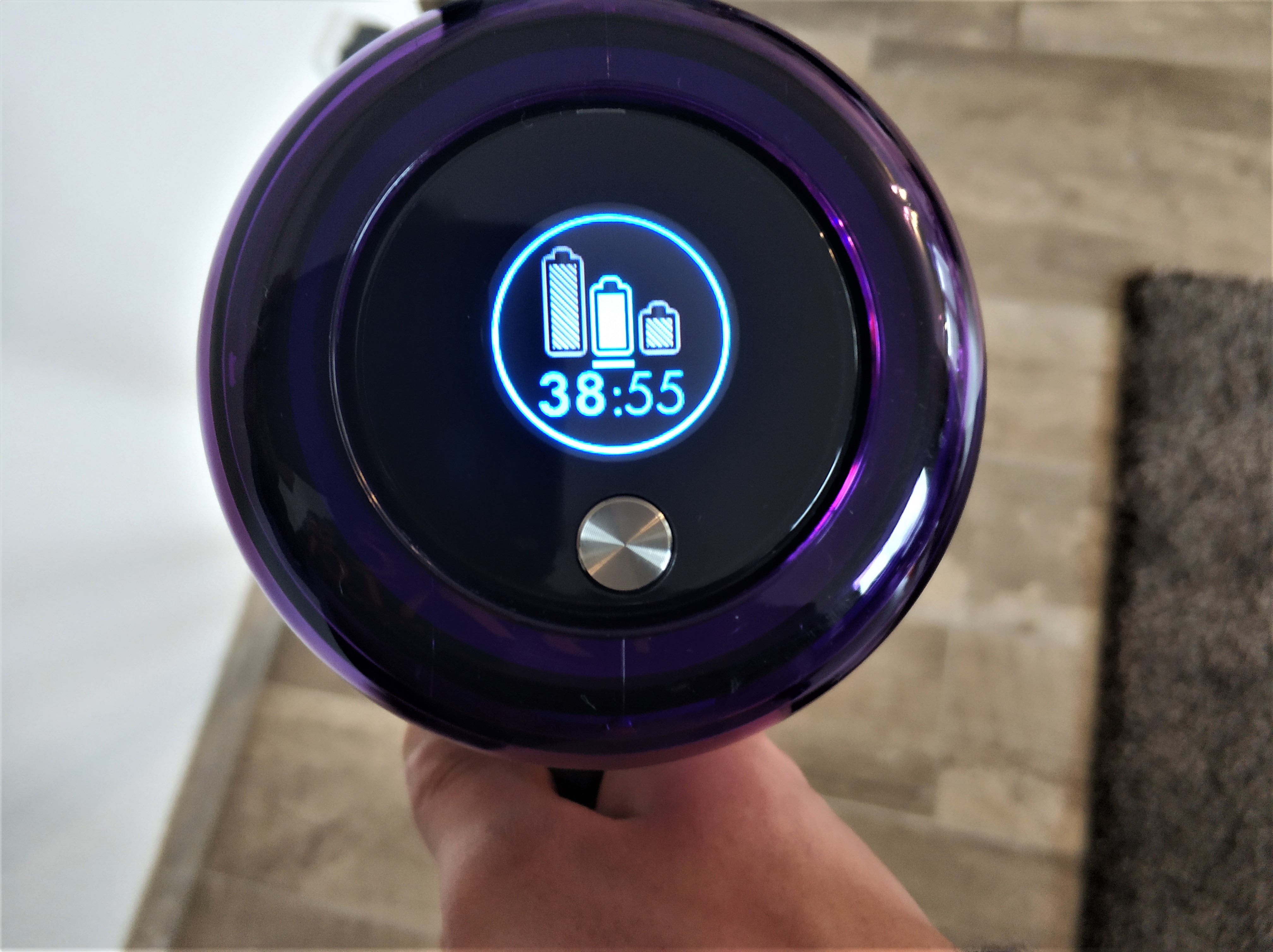 Jetzt kommt der Punkt, der vielleicht die Frage beantworten kann, warum man eine App-Steuerung für einen Akkustaubsauger braucht. Ah nein, doch nicht. In der App lässt sich zwischen drei Saugstufen wählen, Benachrichtigungen über den Status des Saugers erhalten und die verbleibende Akkulaufzeit nachvollziehen. Letzteres ist tatsächlich halbwegs sinnvoll, da man auf dem Sauger selbst nur ungefähr abschätzen kann, wieviel Akkuleistung noch übrig ist. Hier sieht man dann die Akkulaufzeit in Kombination mit der aktuellen Saugstufe.