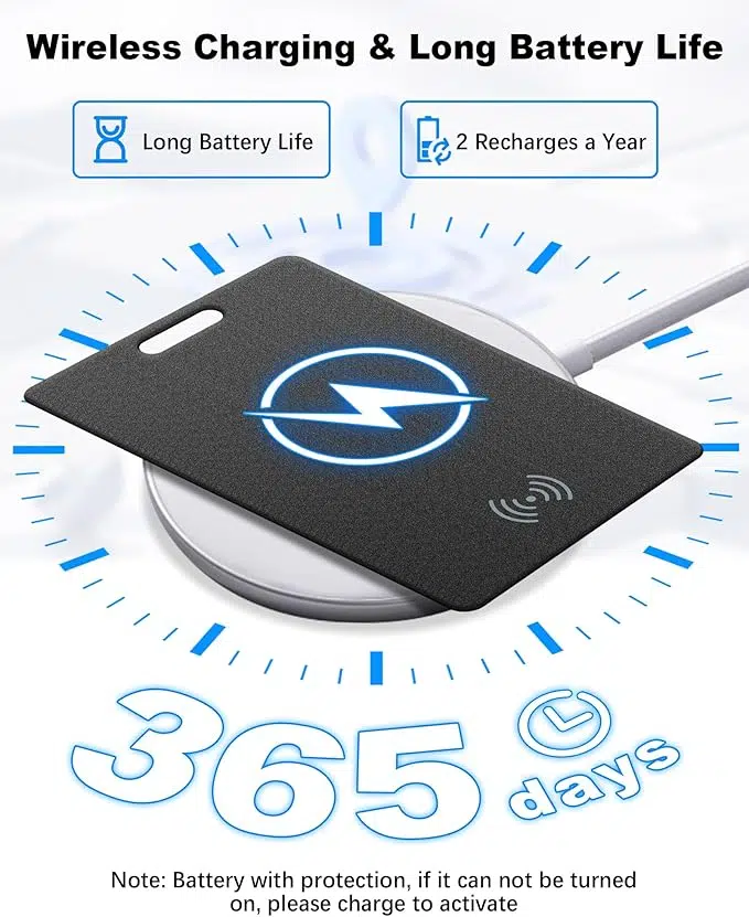 Dabei hält die Karte wohl 180 Tage durch. Wenn der Akku leer ist, kann sie einfach kabellos geladen werden. Das ist praktisch, gerade wenn man bedenkt, dass es teilweise auch Single-Use-Versionen von solchen Tracker-Karten gibt.