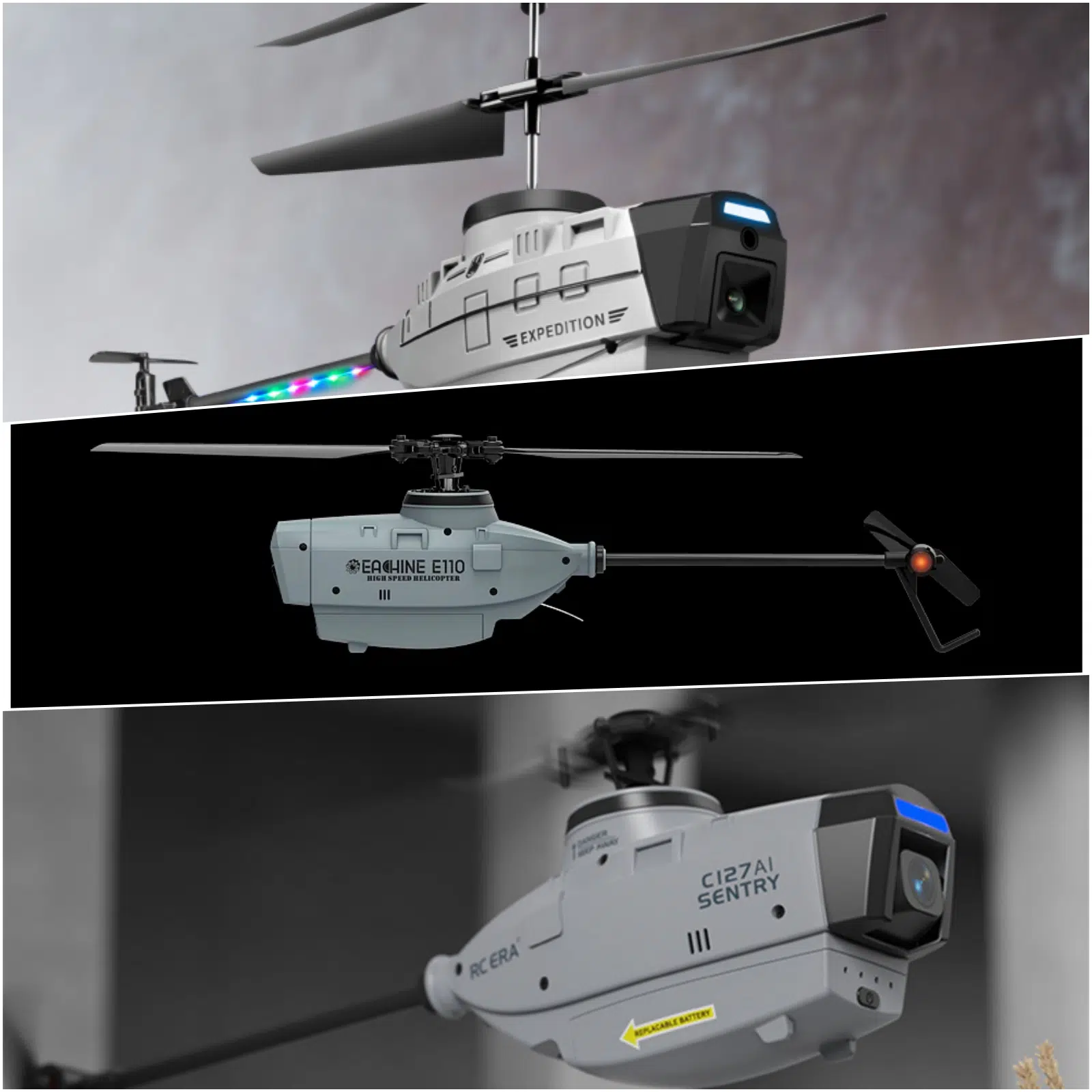 Drei Helikopter unter 100€ im Stile einer amerikanischen BlackHawk-Aufklärerdrohne hatten wir bereits in diesem Artikel vorgestellt. Eine dieser Kamera-Drohnen schauen wir uns jetzt im Hands-On genauer an: Die RC ERA C127 AI; denn diese Drohne soll eine KI-gestützte Objekterkennung und -verfolgung beinhalten.