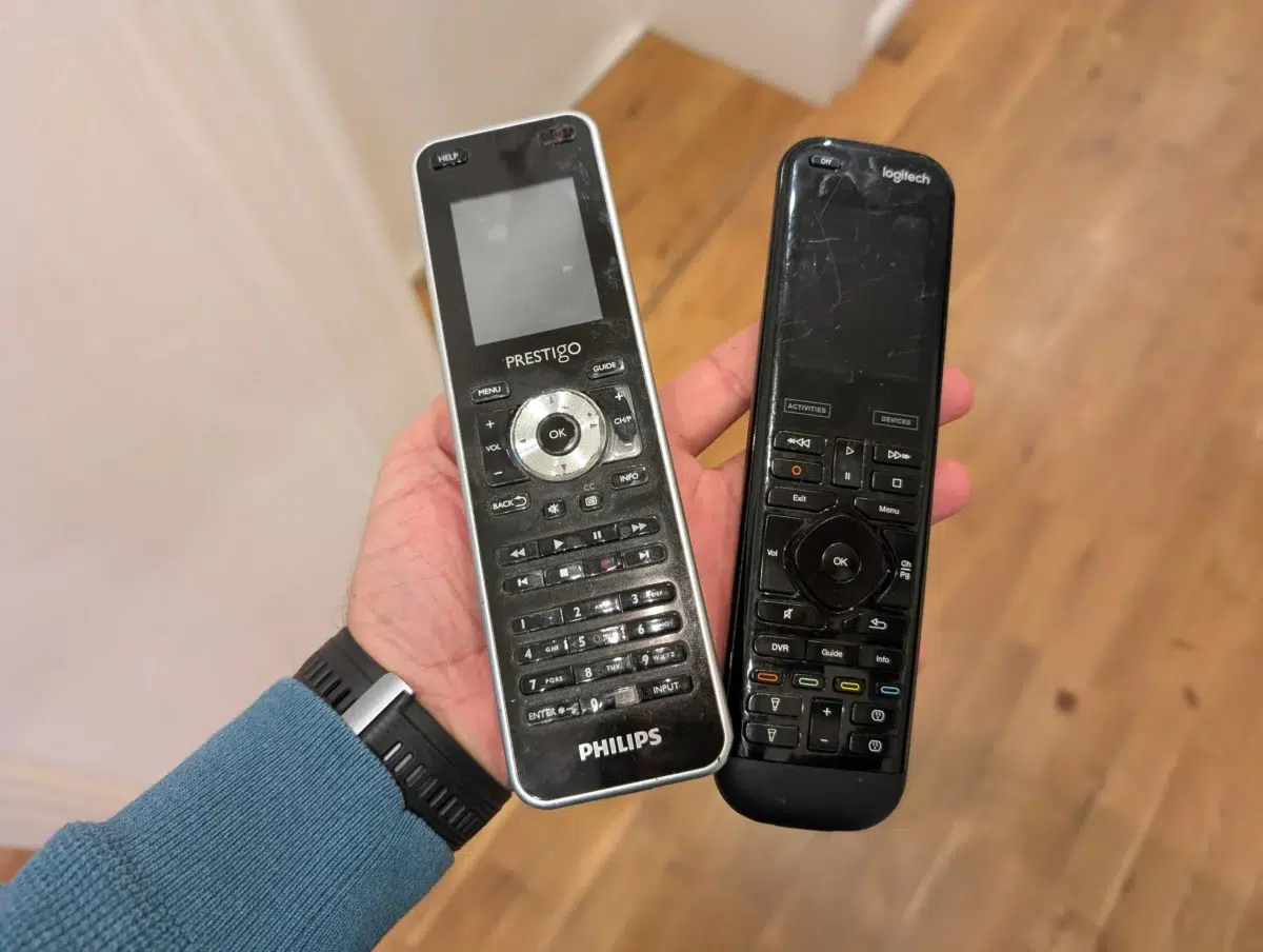 Damit ist die Steuerung unseres Samsung-TVs, Yamaha-AV-Receivers sowie einer Sky-TV-Box und einem älteren als Plex-Server genutzten Wohnzimmer-PCs in Kombination mit smarten Steckdosen nur noch über eine uralte Philips Prestigo Fernbedienung möglich (gebaut für die Ewigkeit wie ein altes Nokia-Handy) – oder eben „old school“ über zig Fernbedienungen. Das ist in einem Haushalt mit 4 Personen, die alle – sagen wir einmal – unterschiedlich stark technisch begabt sind – ziemlich suboptimal.