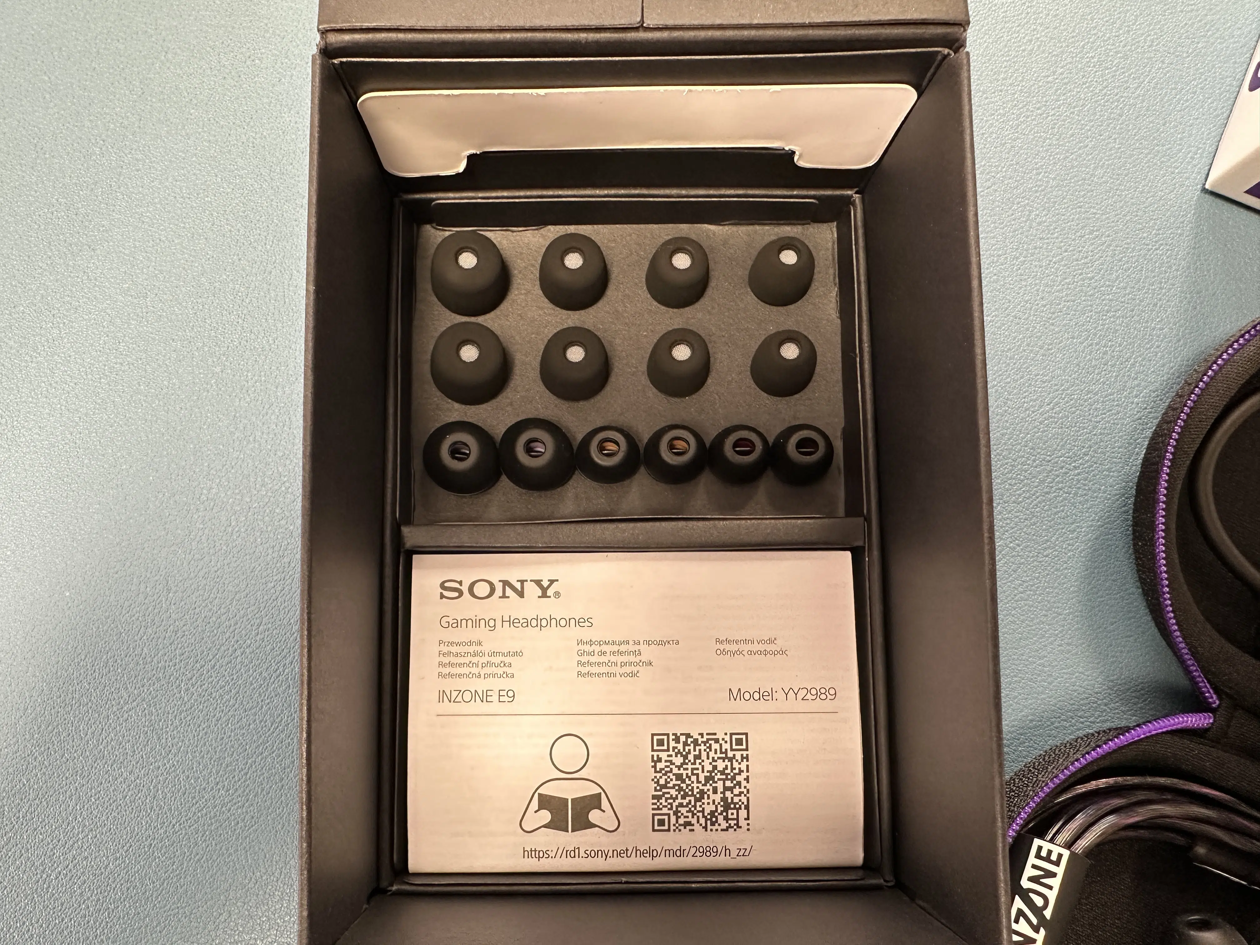Im Lieferumfang der Sony Inzone E9 befinden sich insgesamt acht Paar Ohrpolster, darunter klassische Silikontips sowie Foamtips in mehreren Größen. Dazu gibt es eine kompakte Transporttasche, eine Bedienungsanleitung und einen Klinke-zu-USB-C-Adapter. Ein gutes Set, das auf Flexibilität und Komfort beim Einsatz in verschiedenen Szenarien abzielt.