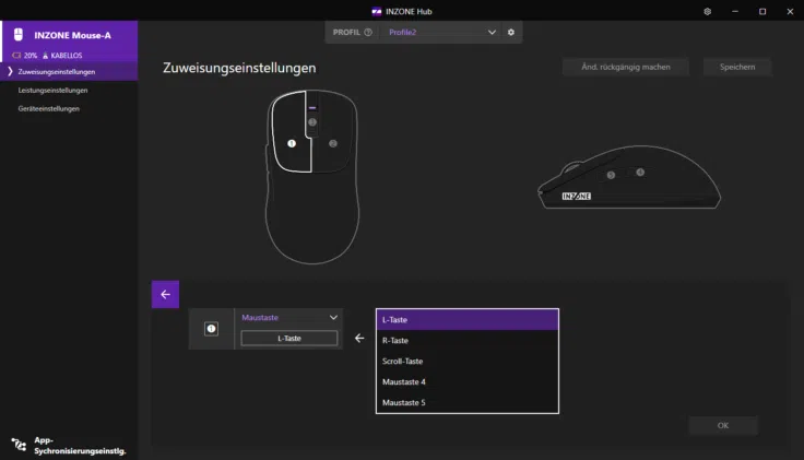Kann ich die Tasten der Sony Inzone Mouse-A frei belegen?