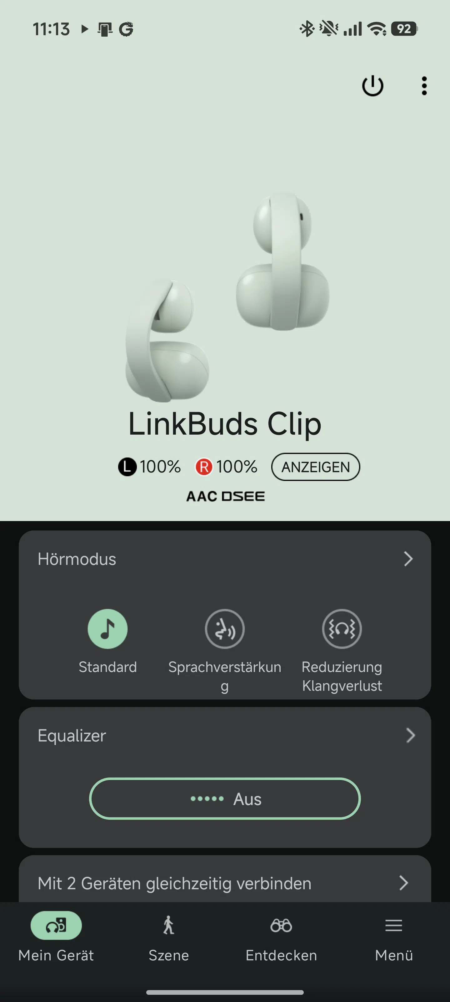 Der Klang ist solide, bleibt aber bauartbedingt besonders im Tieftonbereich (Bass) schwach. Auch der Equalizer kann hier nur bedingt nachhelfen. Im direkten Vergleich mit Konkurrenzmodellen (wie den Huawei FreeClip 2 oder Soundcore AeroClip) klingen die Sony LinkBuds Clip weniger voll und bauen eine kleinere Bühne auf.