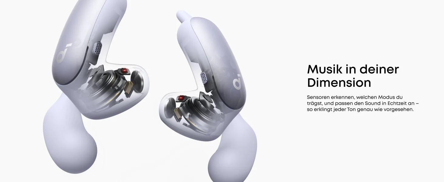 Besonders gut gelungen ist Soundcore dabei die Abstimmung der Lautstärke zwischen den beiden Modi. Obwohl die Hörer im zweiten Modus deutlich näher am Ohr sitzen, bleibt die gefühlte Lautstärke nahezu gleich. Statt eines plötzlichen Lautstärkesprungs nimmt man vor allem eine veränderte Klangcharakteristik wahr: mehr Bassfundament sowie ein klareres Gefühl für Hoch- und Mittelton.