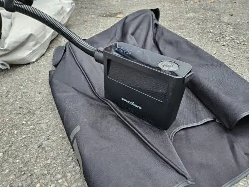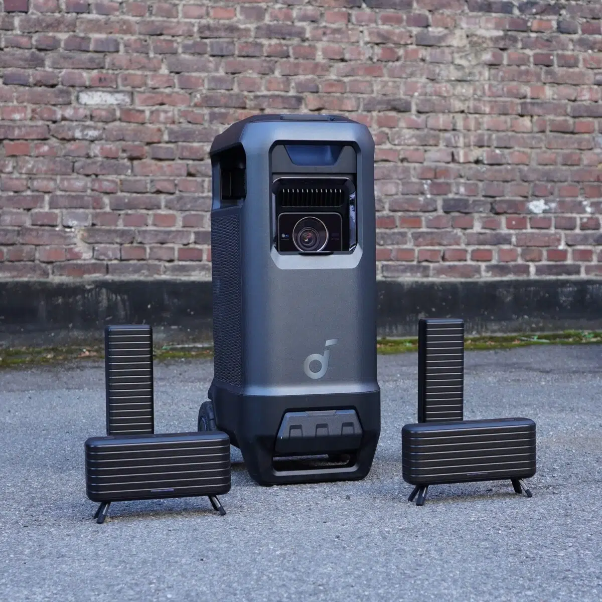 Insgesamt ist die Einrichtung des ganzen Systems eine seiner großen Stärken. Soundcore verspricht hier viel, kann das unserer Erfahrung nach in der Praxis aber auch halten. Vorausgesetzt, man hat eine (Lein-)Wand zur Verfügung (und dazu, wie einfach die aufblasbare Leinwand aufzubauen ist, kommen wir noch), dauert das Aufbauen von Beamer und Surround-Sound-System kaum eine Minute.