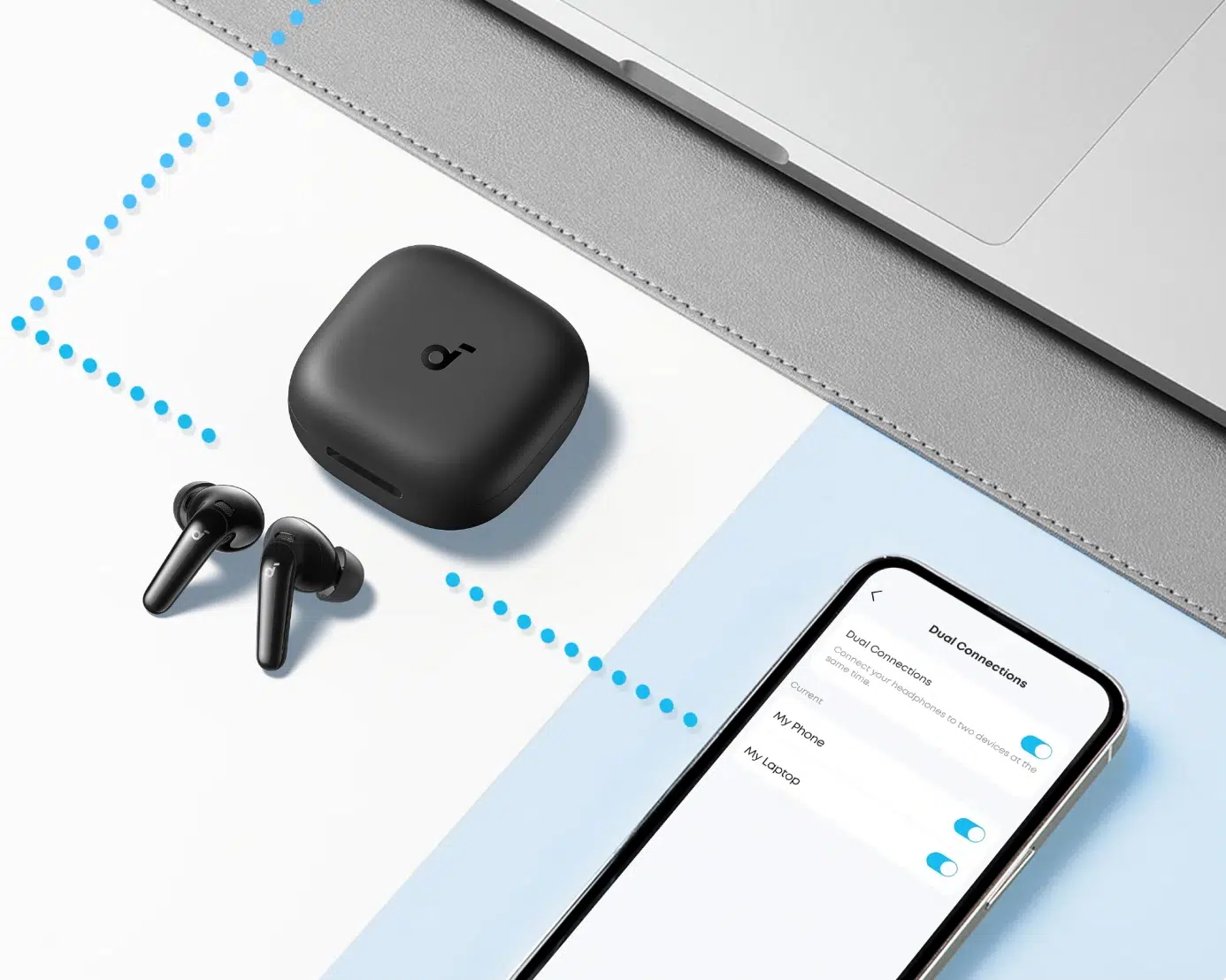 Für ANC und Headset kommen pro Hörer drei Mikrofone zum Einsatz. Die KI-basierte Geräuschreduzierung soll selbst in lauter Umgebung für verständliche Gespräche sorgen – etwa in der Stadt oder in der Bahn. Wie gut das gelingt, wird sich zeigen. Gerade bei günstigeren Soundcore-Modellen war die Headset-Qualität in der Vergangenheit nicht immer auf dem gewünschten Niveau.
