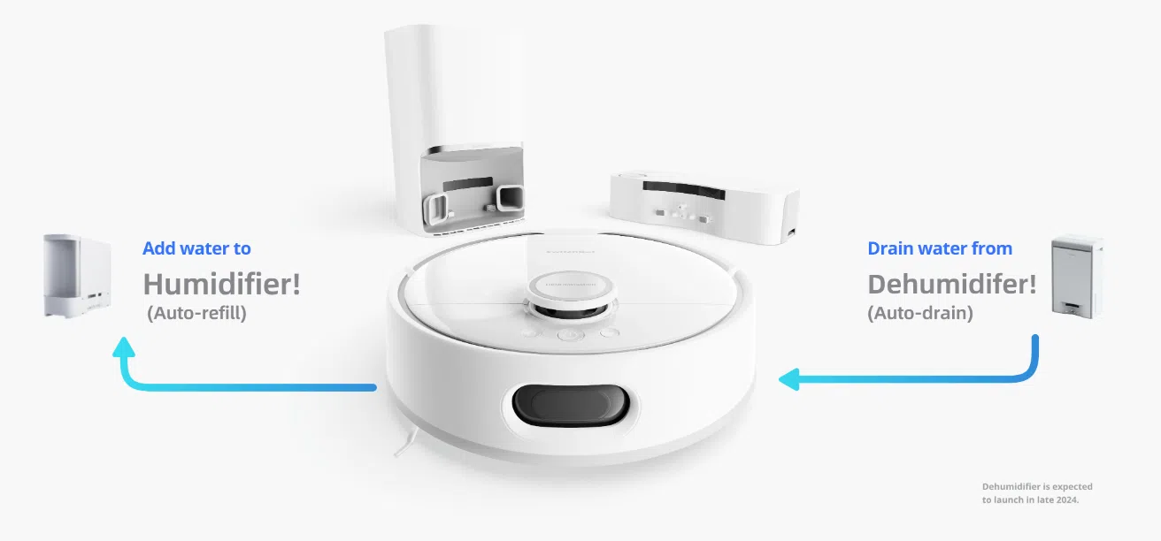Noch smarter wird es dann, wenn man das Konzept weiterdenkt. Genau das SwitchBot gemacht und bringt jeweils einen Luftbefeuchter und Luftentfeuchter auf den Markt. Ersterer kann dann vom S10 befüllt werden und der Luftentfeuchter wird vom Saugroboter entleert. Das Wasser kann dann sogar zum Wischen genutzt werden. Nachteil ist bisher daran, dass man so kein Reinigungsmittel nutzen kann. Nach unserem ersten Hands-On habt ihr auch in den Kommentaren bereits weitere Ideen gehabt. Ein smartes Bewässerungssystem für Pflanzen fänden wir zum Beispiel auch ziemlich genial.