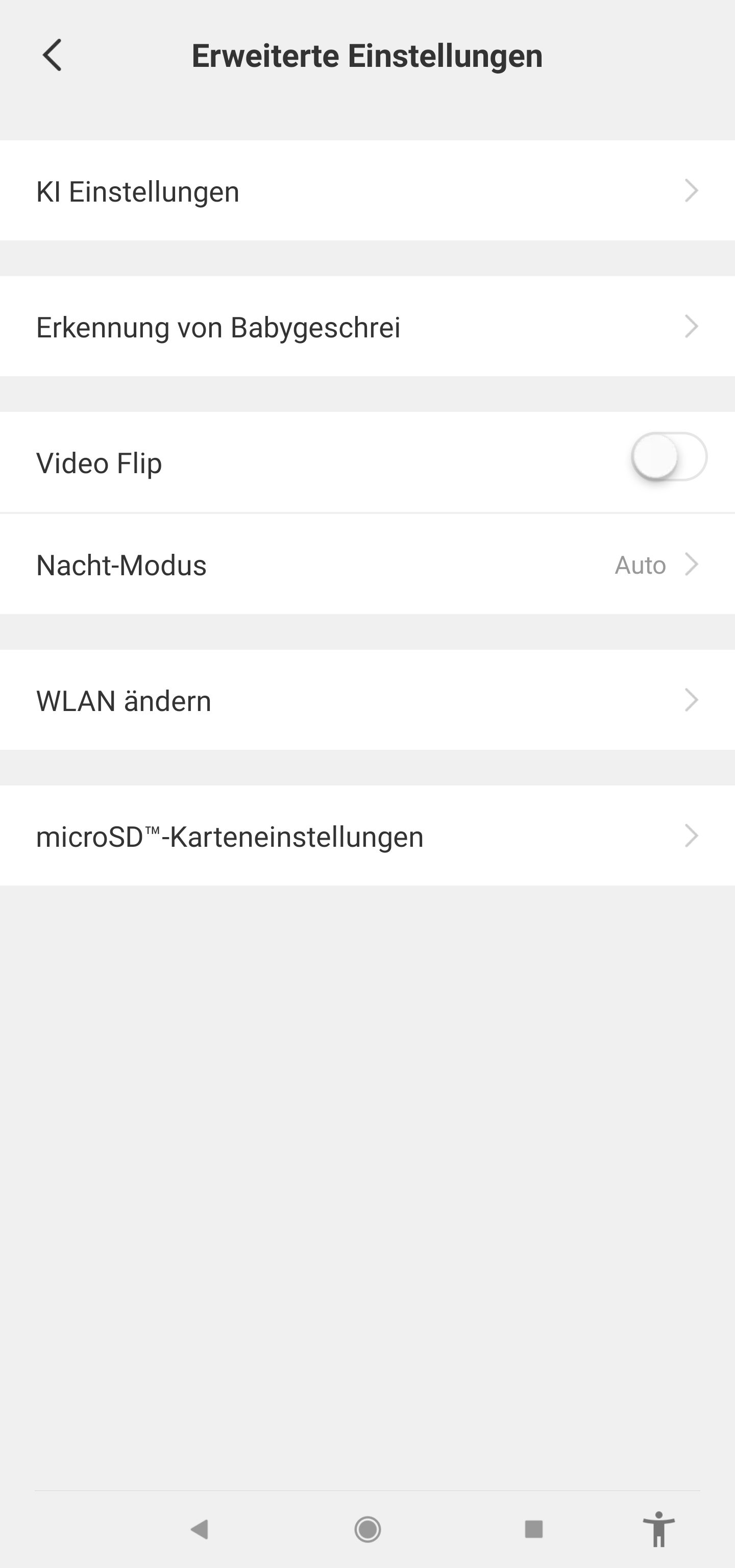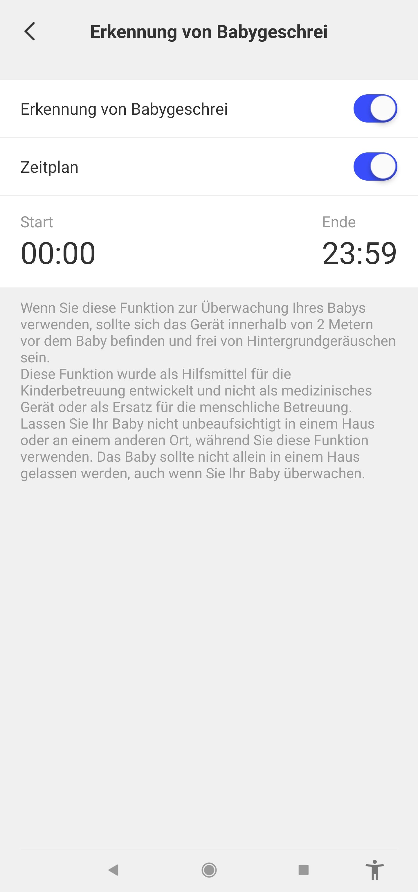 In den Einstellungen von der Kamera kann man noch verschiedene Dinge vornehmen und so z.B. einen Zeitplan festlegen, den Nachtmodus einstellen oder die Babygeschrei-Erkennung einstellen.