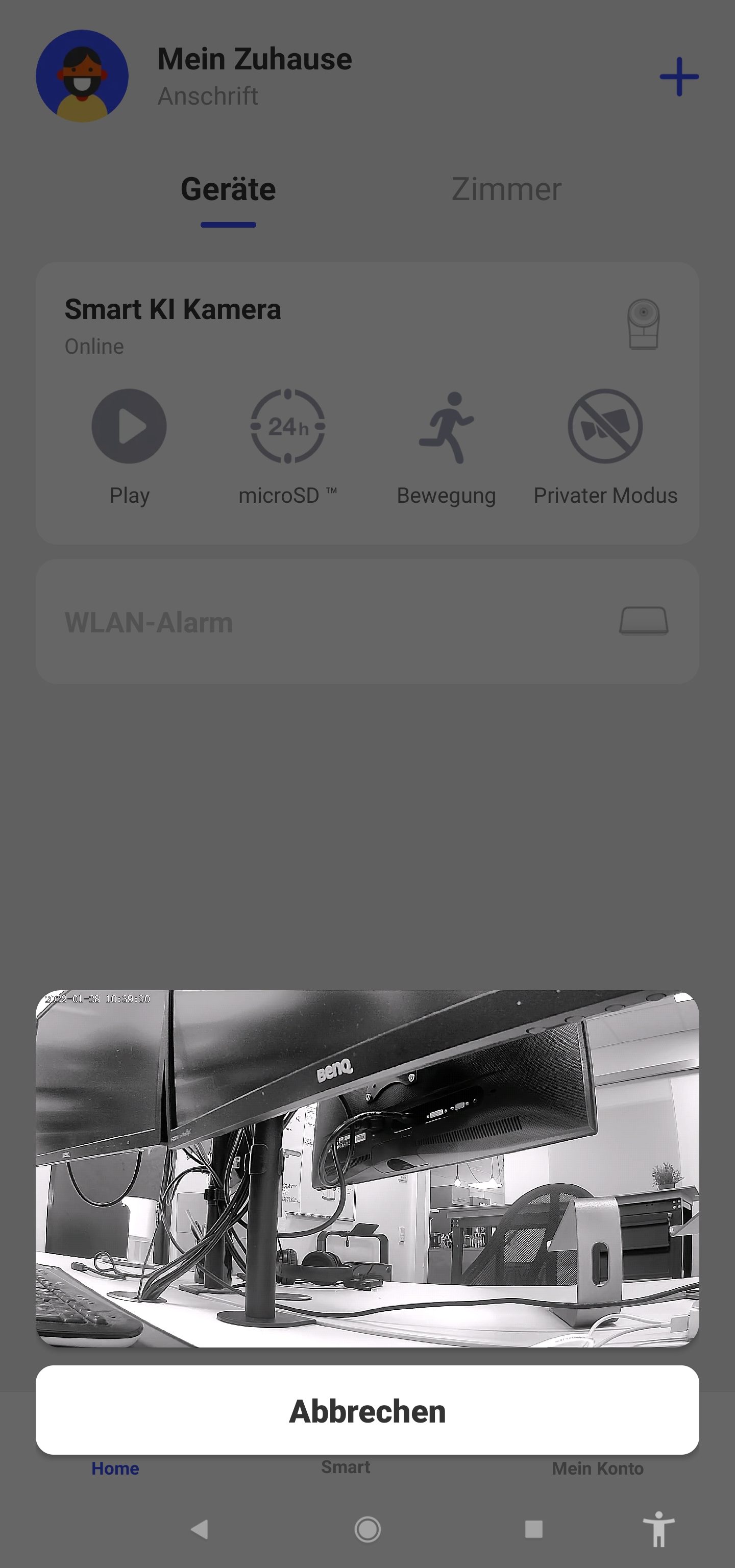 Der Playmodus zeigt ein aktuelles Bild aus der Kamera. Durch das bereits erwähnte hin und her wischen kann man sich umgucken und bekommt einen fast kompletten Rundum-Blick. Durch das verbaute Mikro kann man sogar mit den Personen, die vor der Kamera stehen, reden.