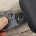 An der linken Seite des Lautsprechers ist eine Textilschlaufe mit Druckknopf angebracht. So kann man den Soundcore Motion 300 hochkant beispielsweise an einem Fahrradlenker, einem Ast oder ähnlichem befestigen. Zudem gibt es auf der Unterseite, sowie auf der Rückseite Gummifüße für eine stehende und liegende Ausrichtung des Speakers. Um den IPX7-Wasserschutz zu gewährleisten befindet sich der Anschluss hinter einer Gummikappe auf der rechten Seite.